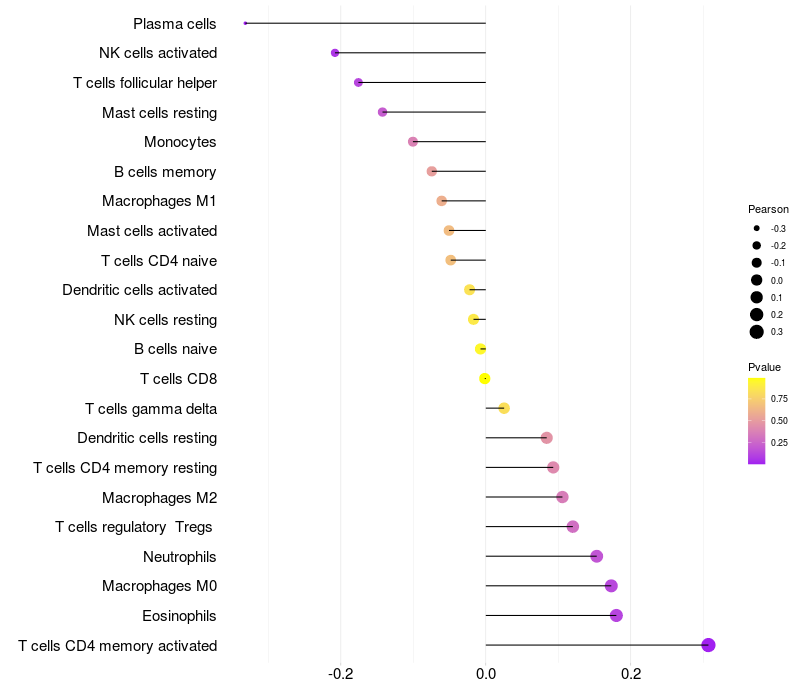 Lollipop of EPB41 expression and immune infiltrating cell level correlation result in HBV+ samples