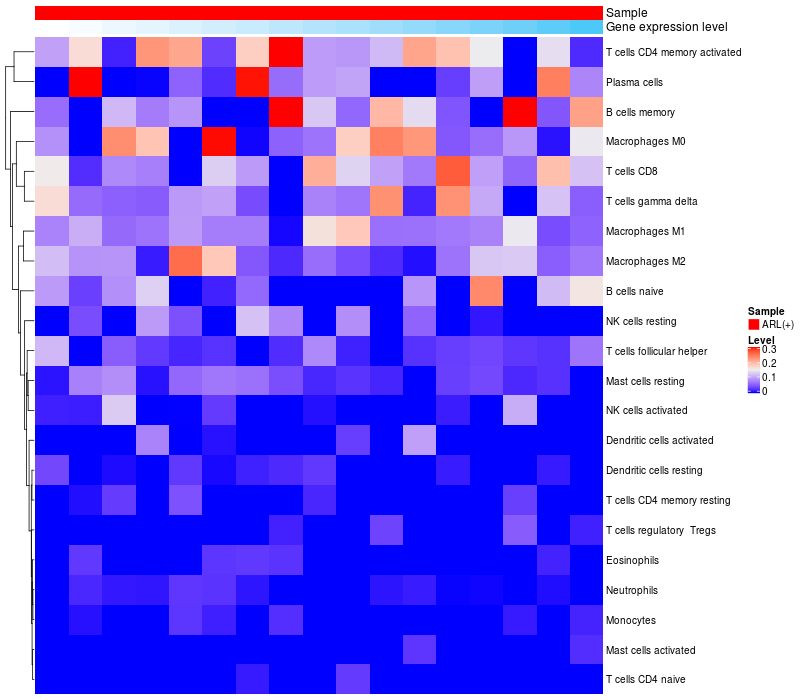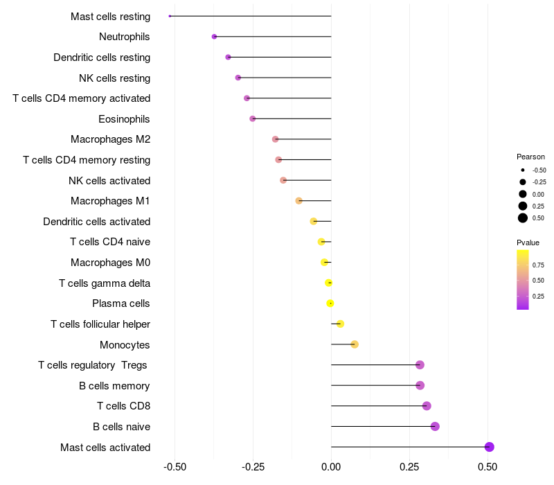Relationship between gene expression and immune infiltrating cell level