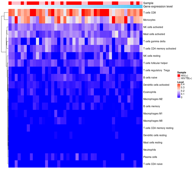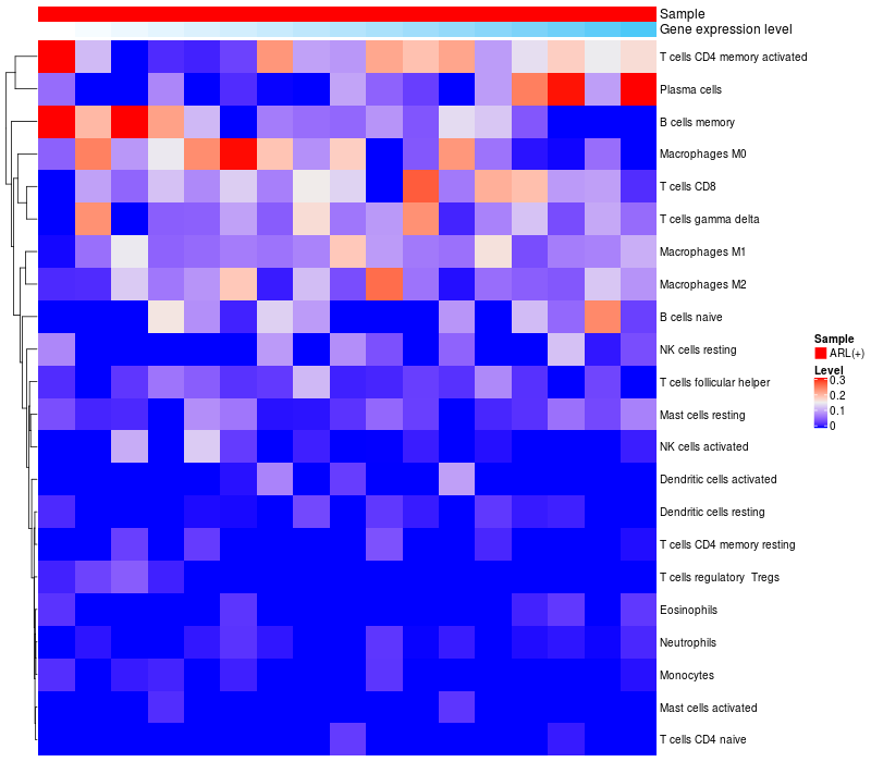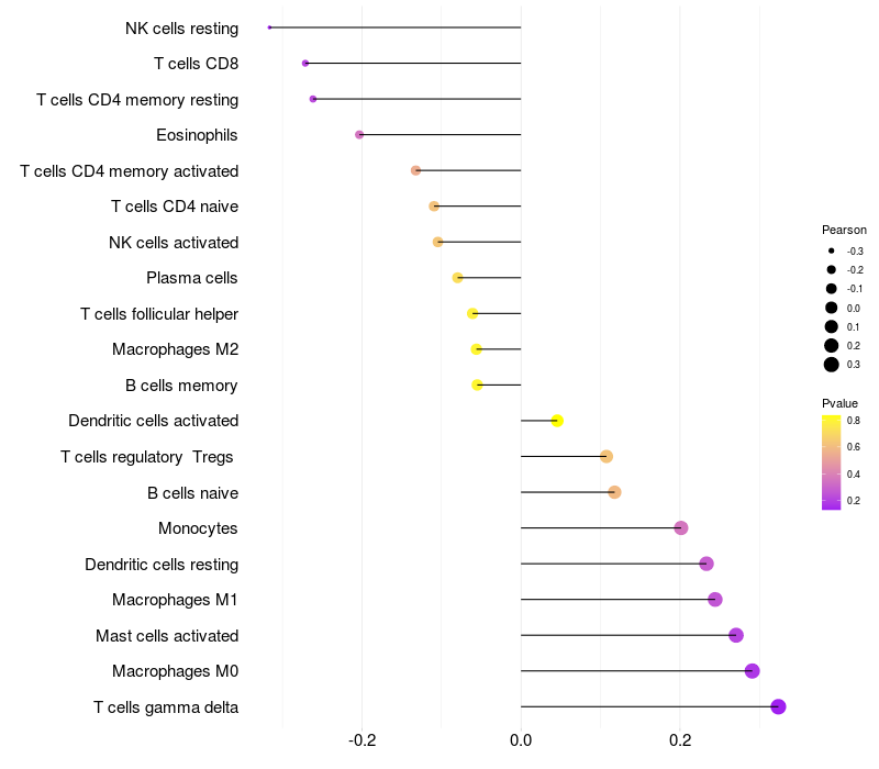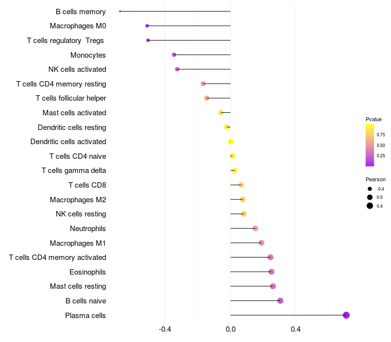 Relationship between gene expression and immune infiltrating cell level