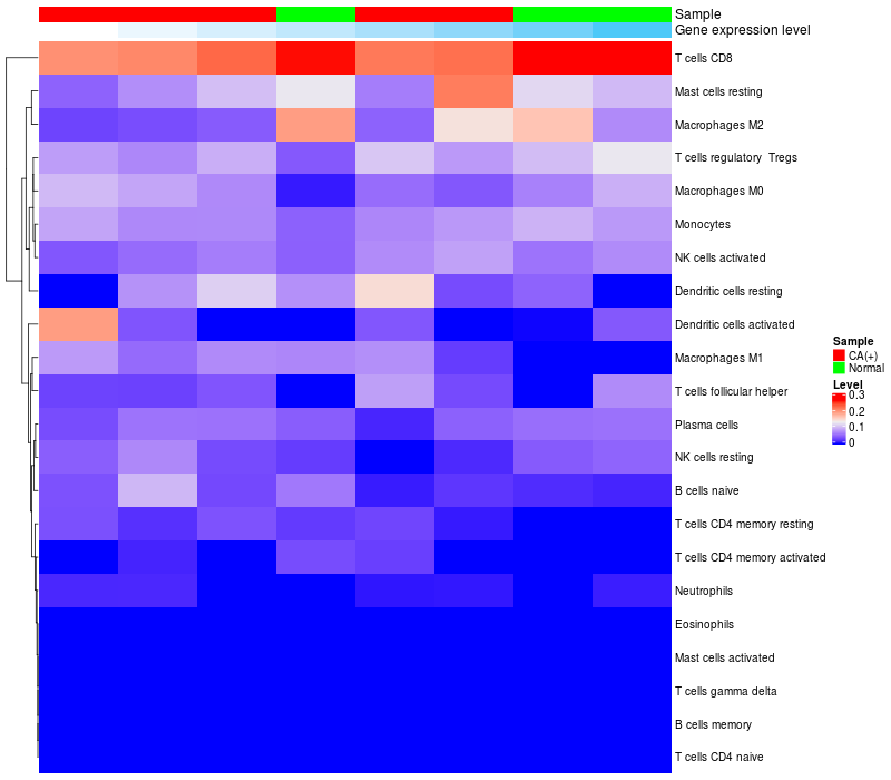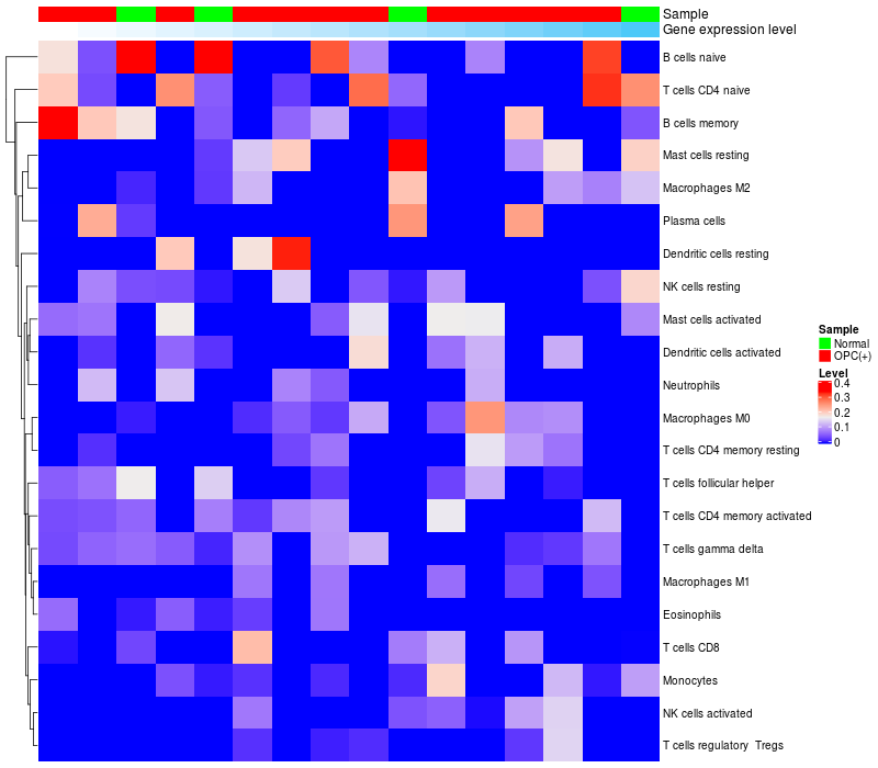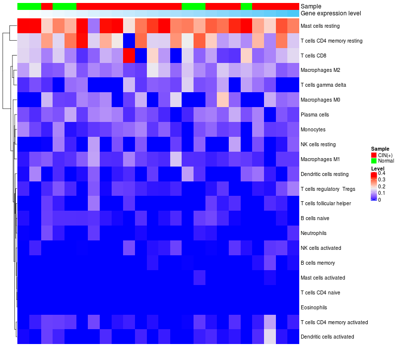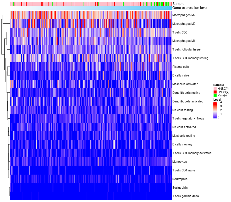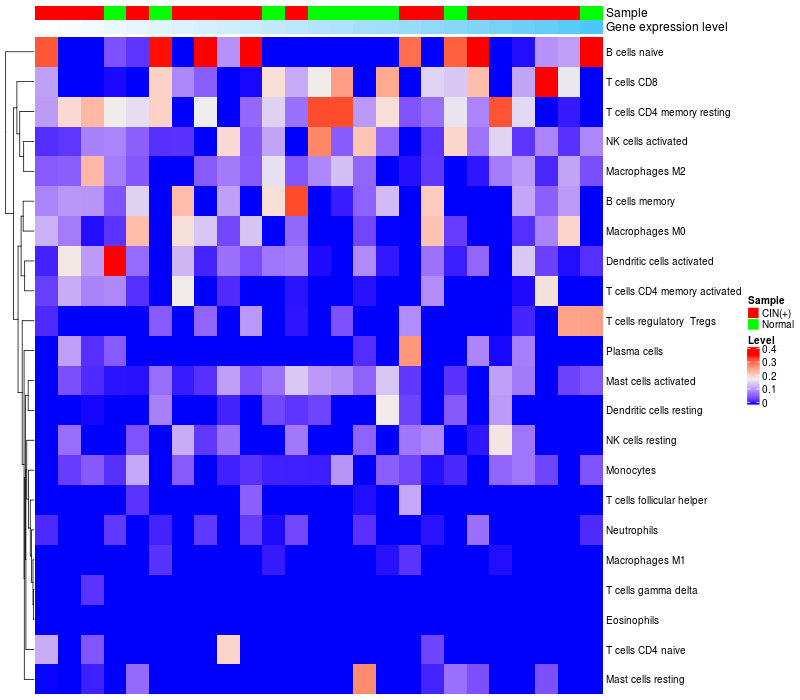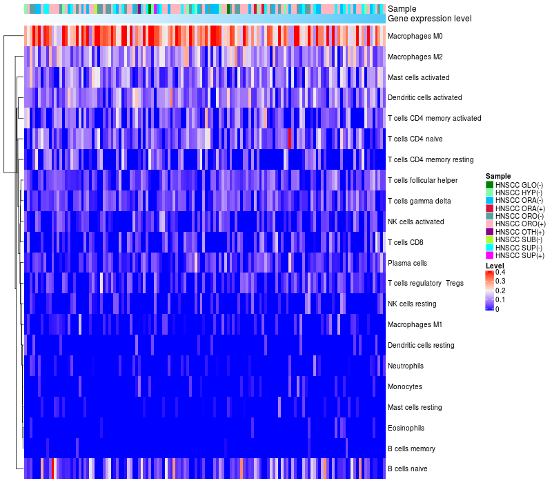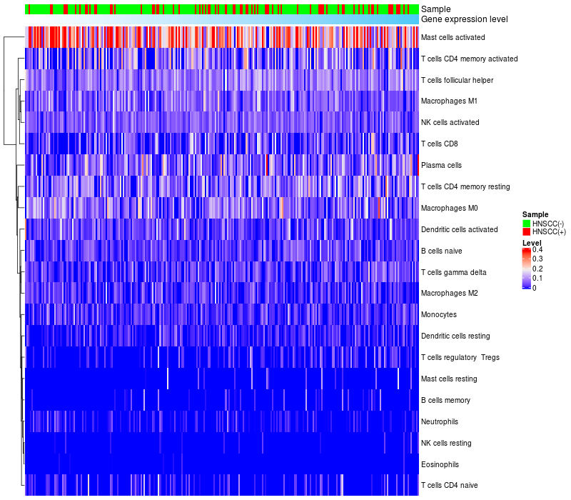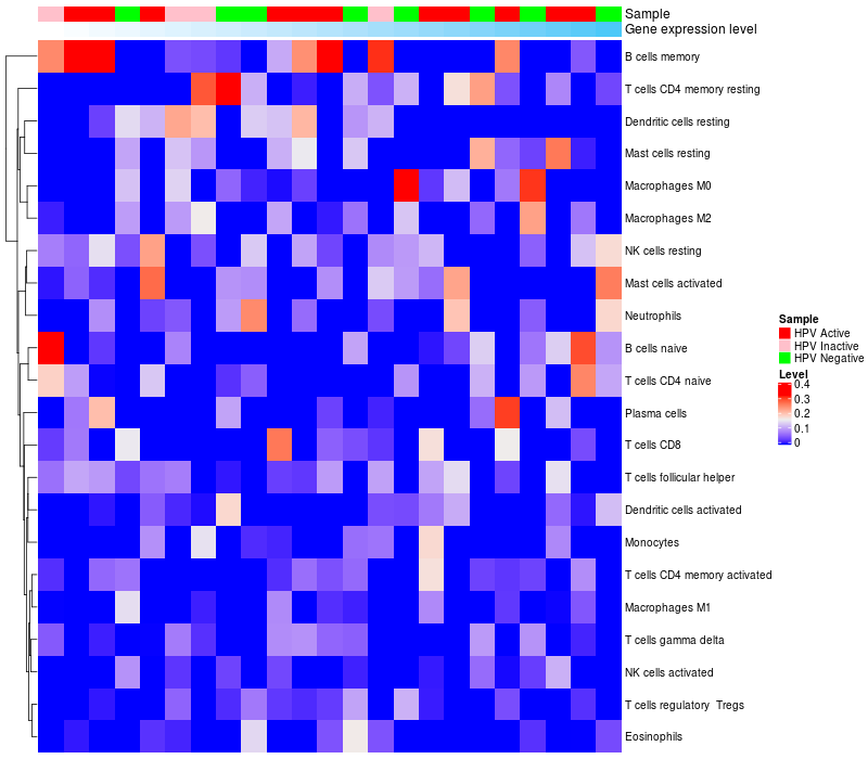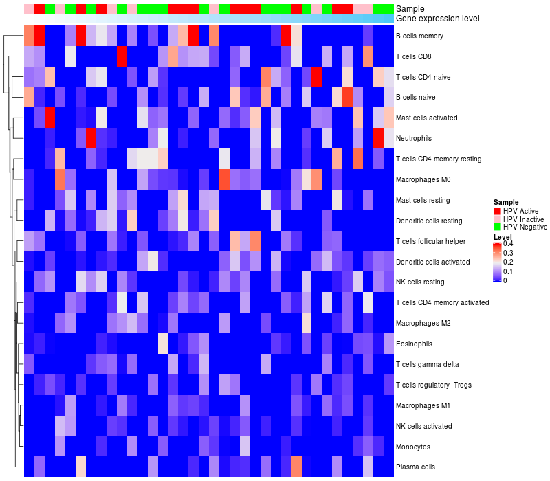 Lollipop of ERBB2 expression and immune infiltrating cell level correlation result in HPV+ samples