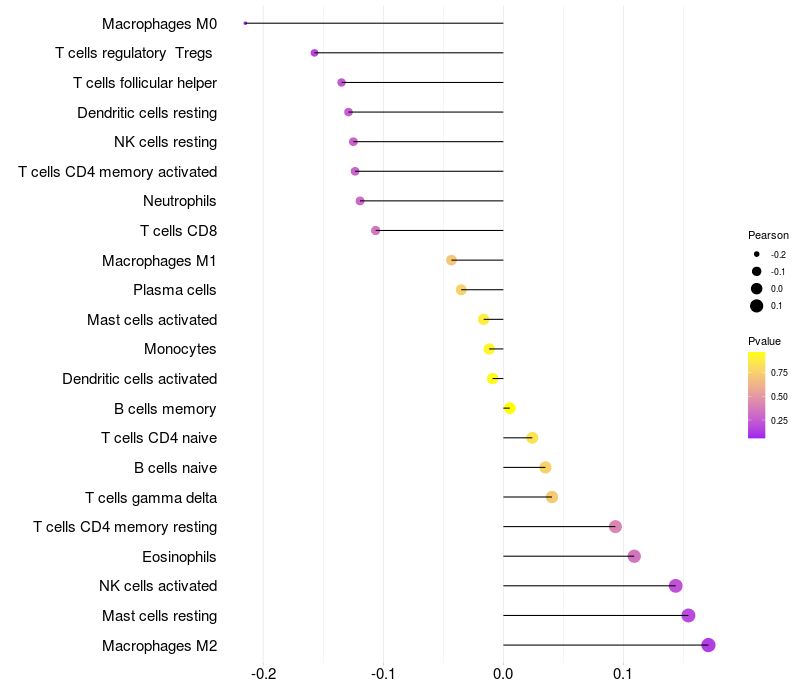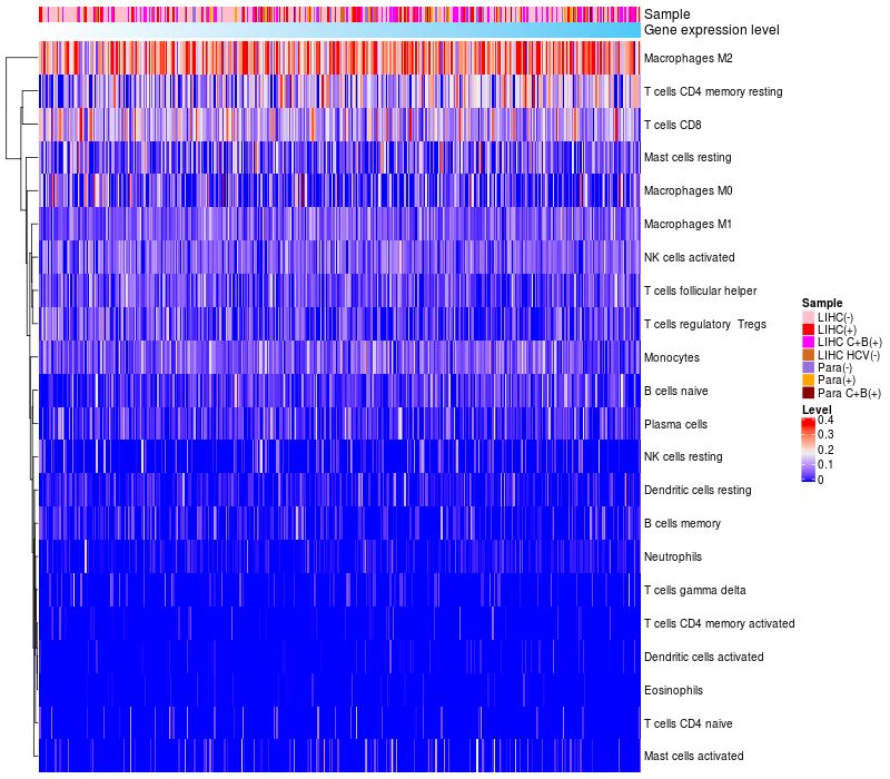 Relationship between gene expression and immune infiltrating cell level