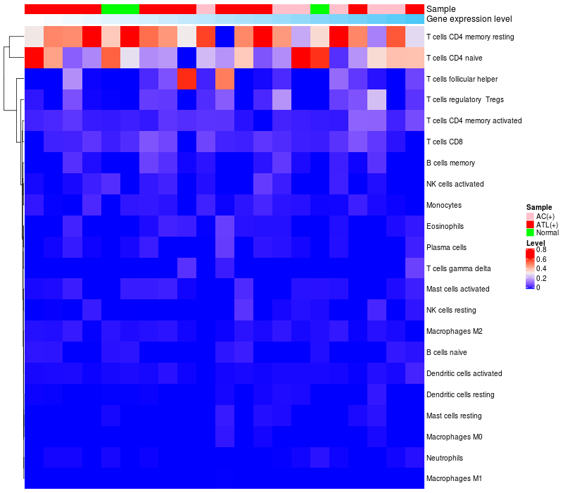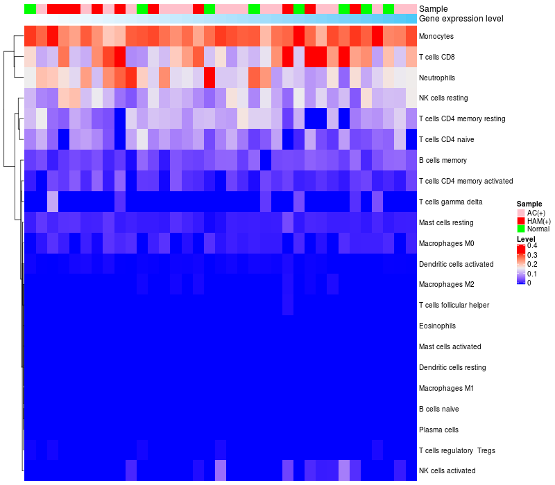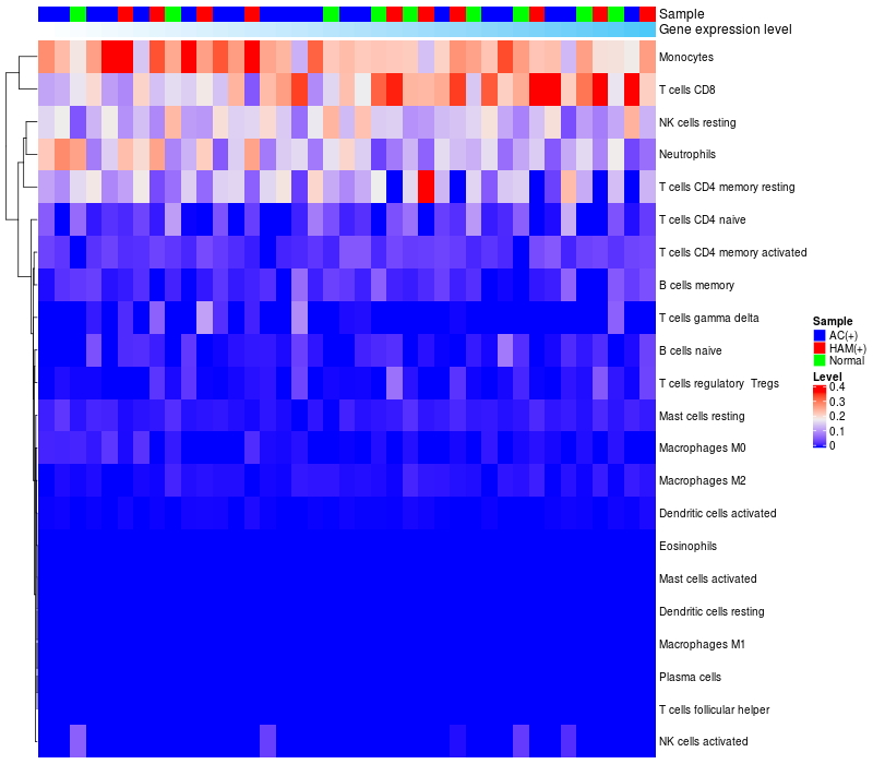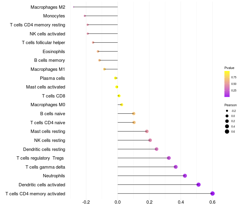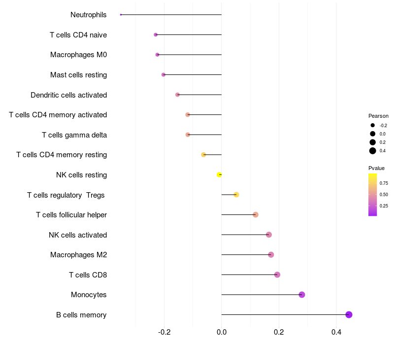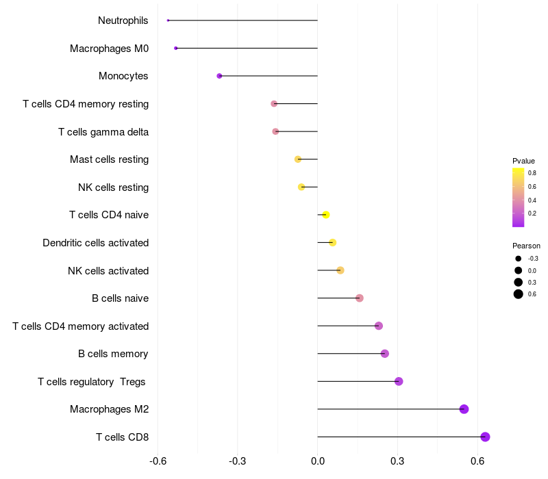 Relationship between gene expression and immune infiltrating cell level