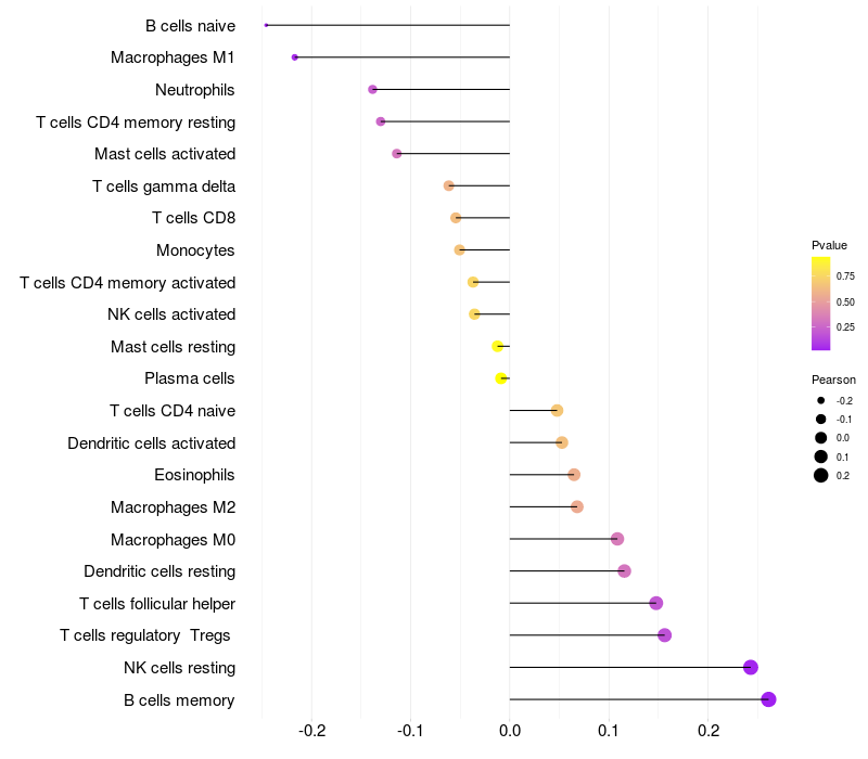 Relationship between gene expression and immune infiltrating cell level
