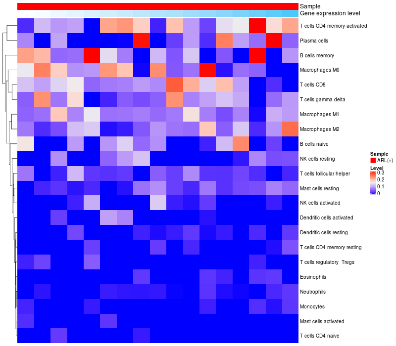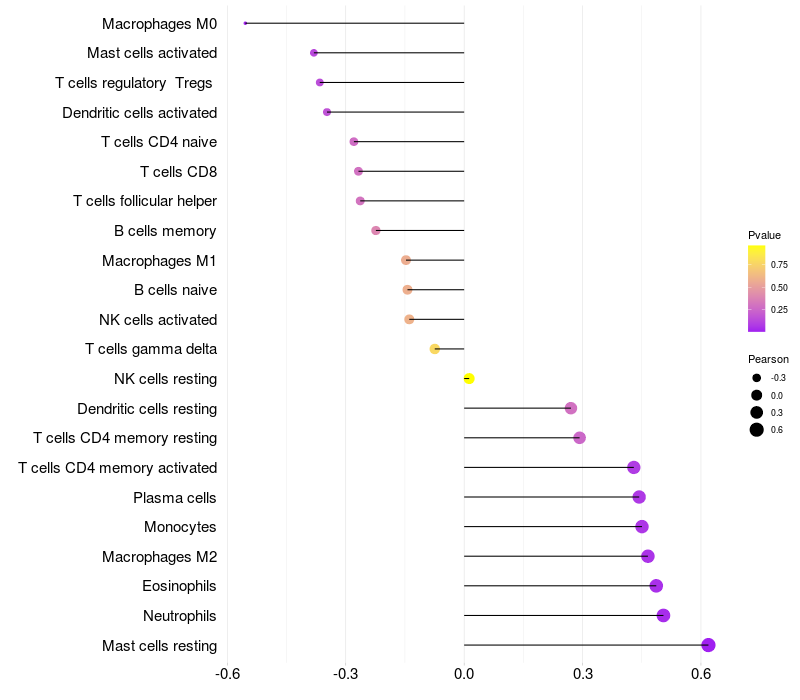 Relationship between gene expression and immune infiltrating cell level