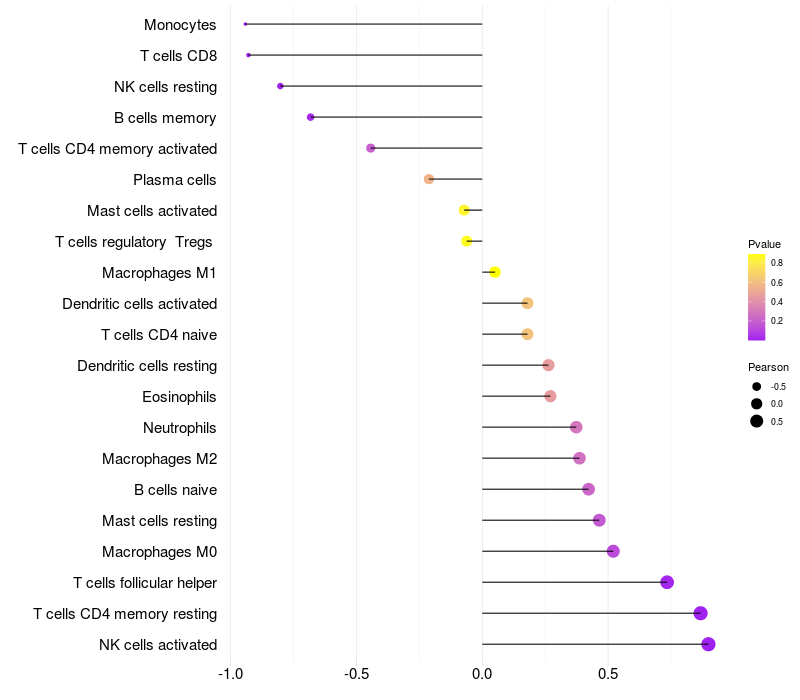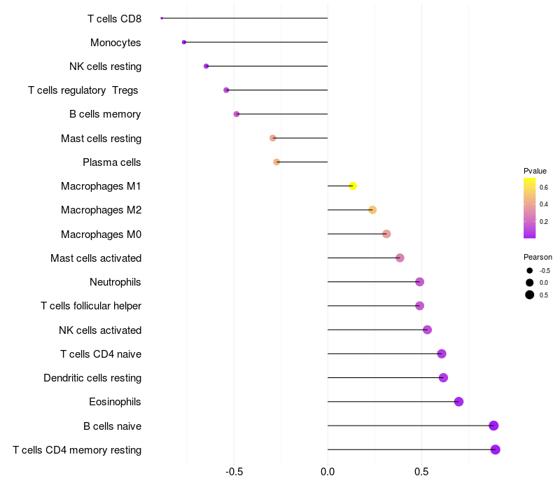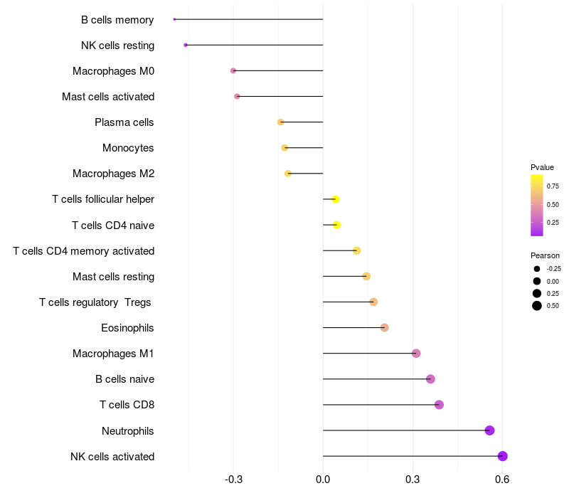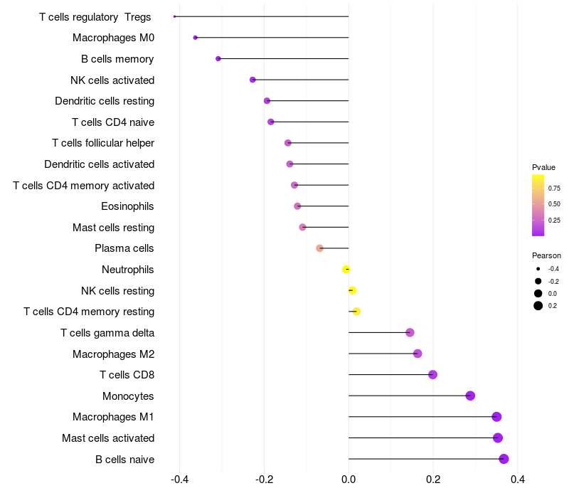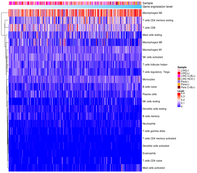 Relationship between gene expression and immune infiltrating cell level