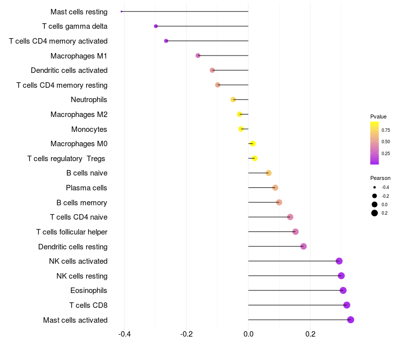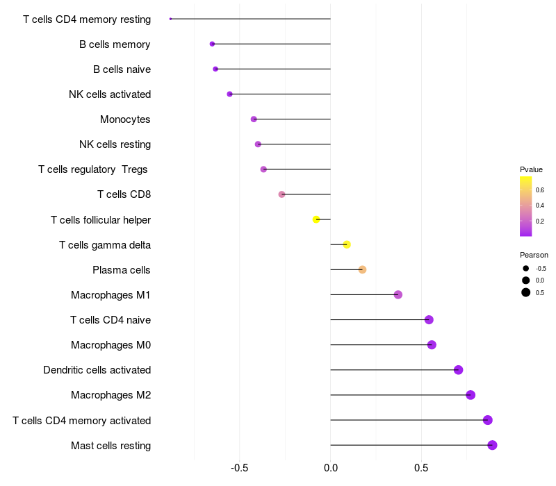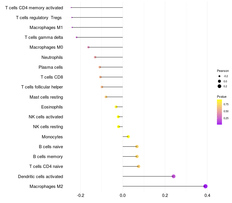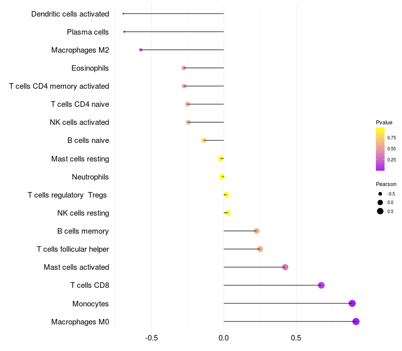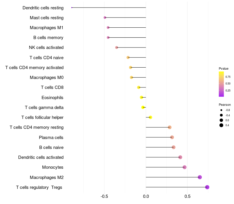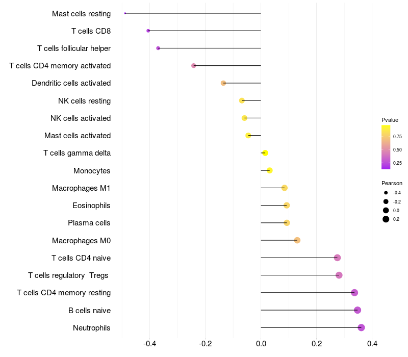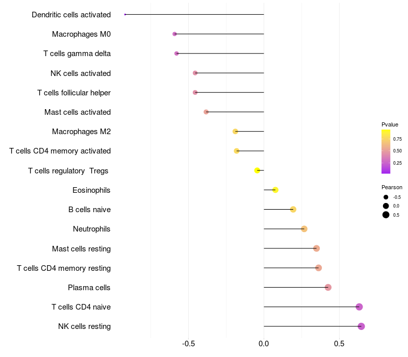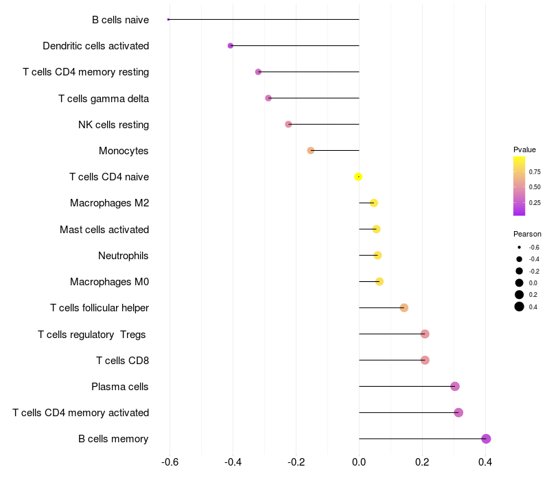 Lollipop of ESRRB expression and immune infiltrating cell level correlation result in EBV+ samples