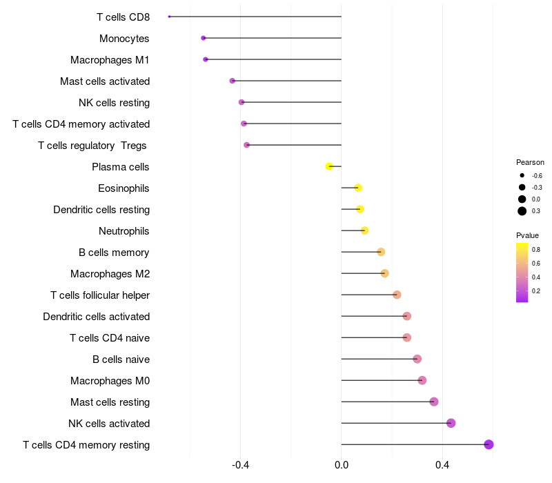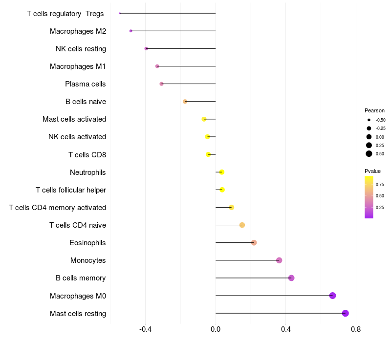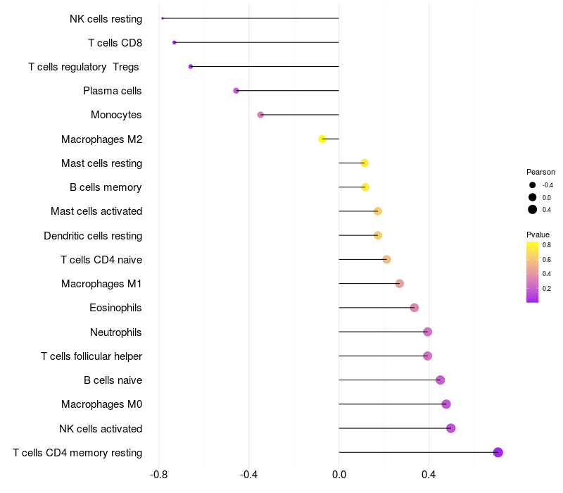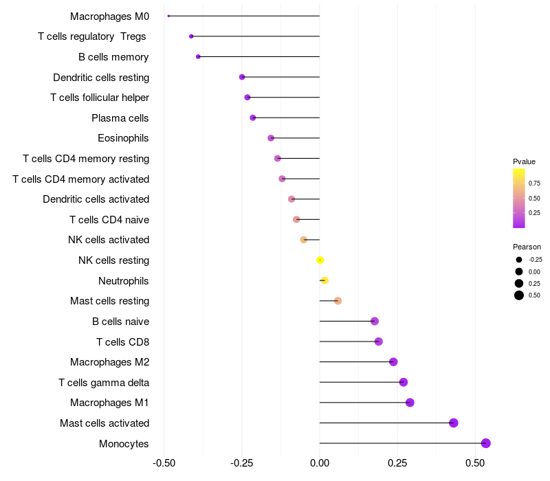 Lollipop of ETFDH expression and immune infiltrating cell level correlation result in HBV+ Liver cirrhosis samples