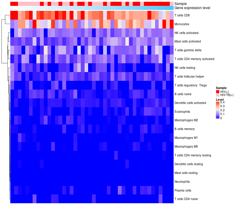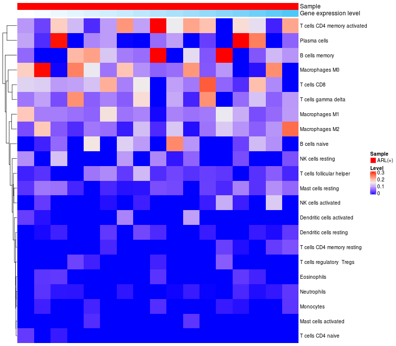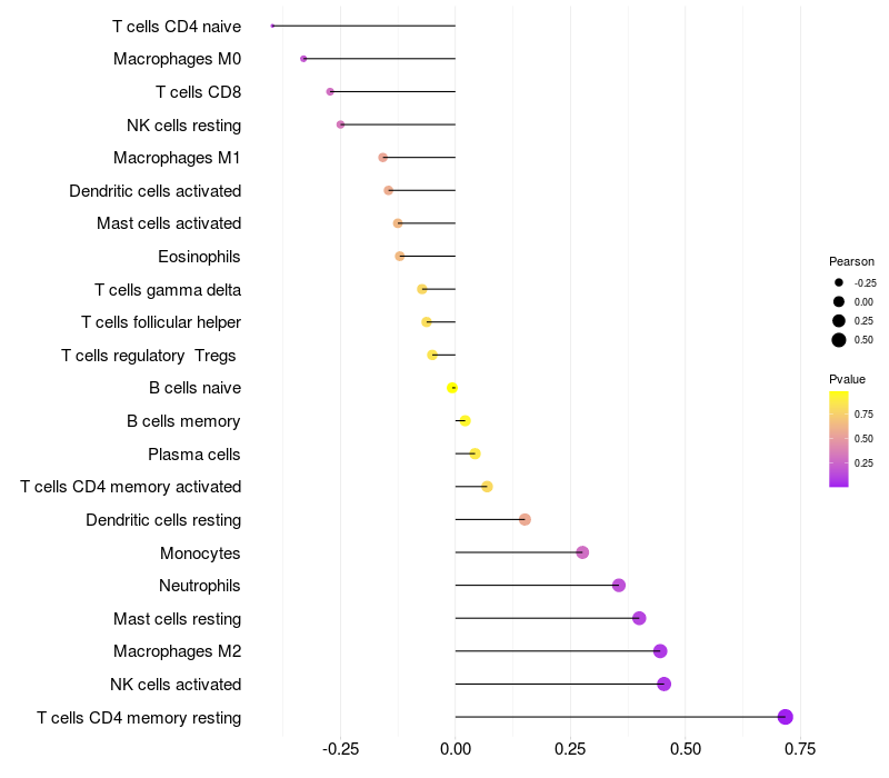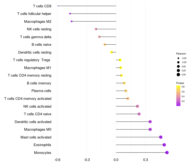 Relationship between gene expression and immune infiltrating cell level