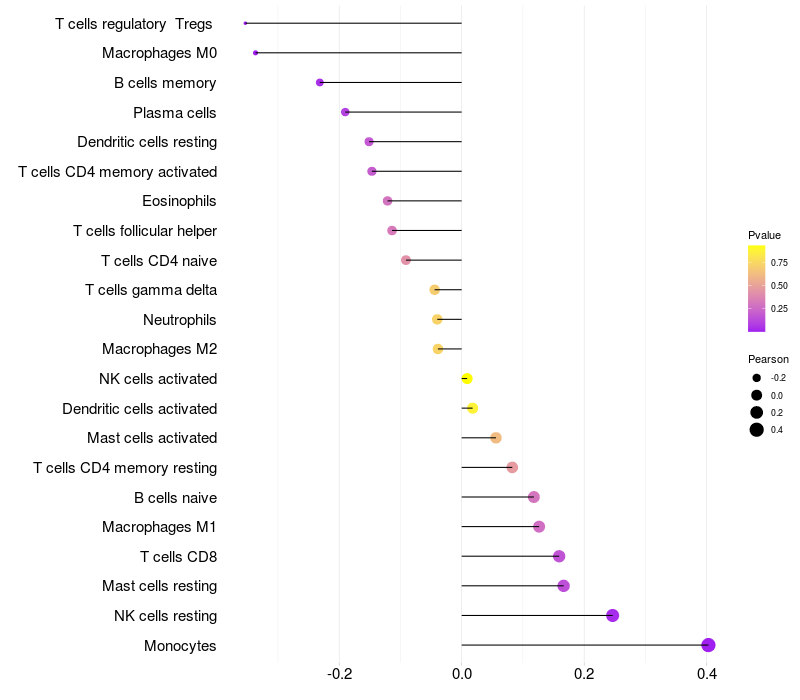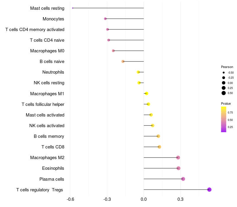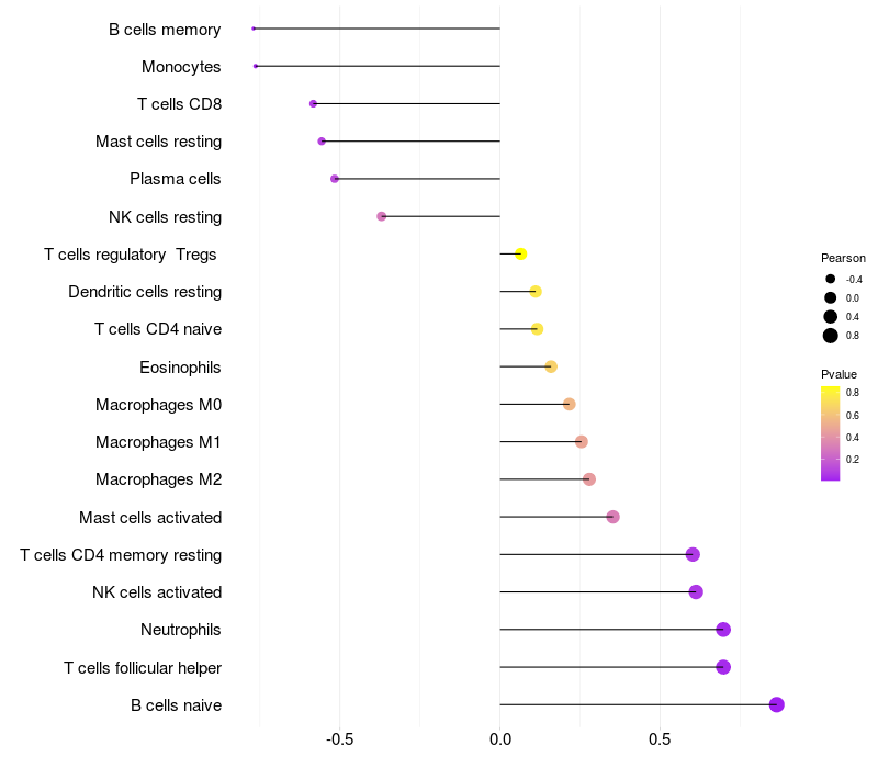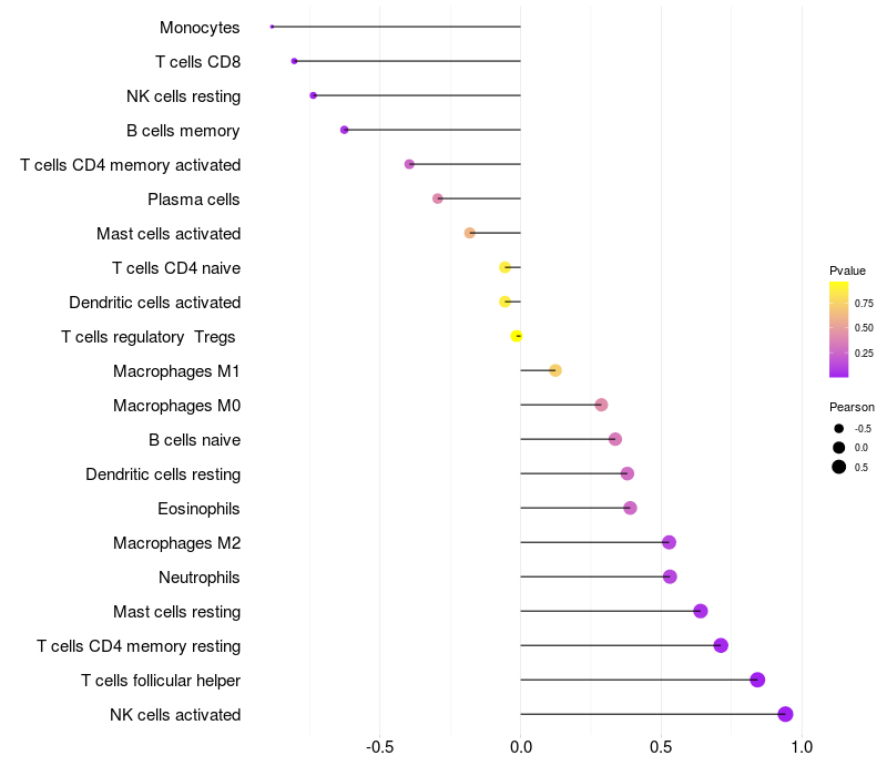 Lollipop of ETNK2 expression and immune infiltrating cell level correlation result in HBV+ Liver cirrhosis samples