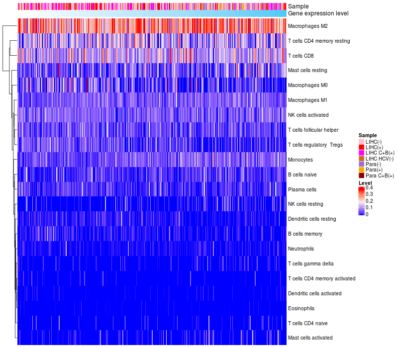 Relationship between gene expression and immune infiltrating cell level