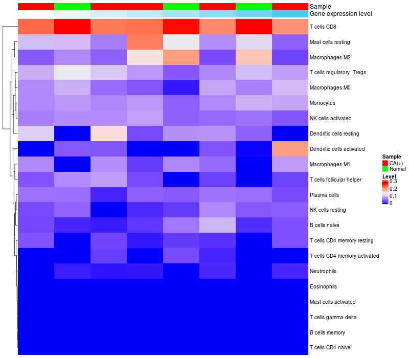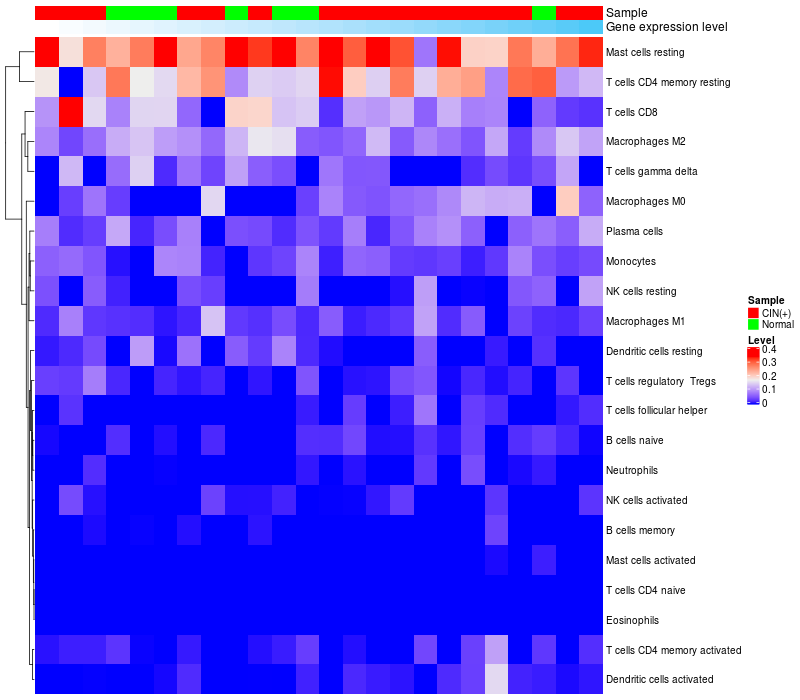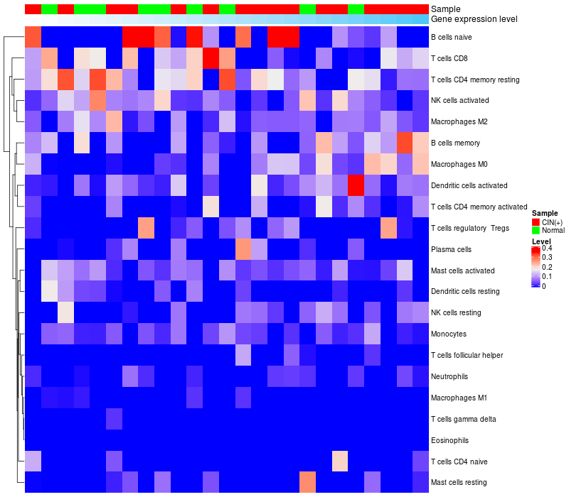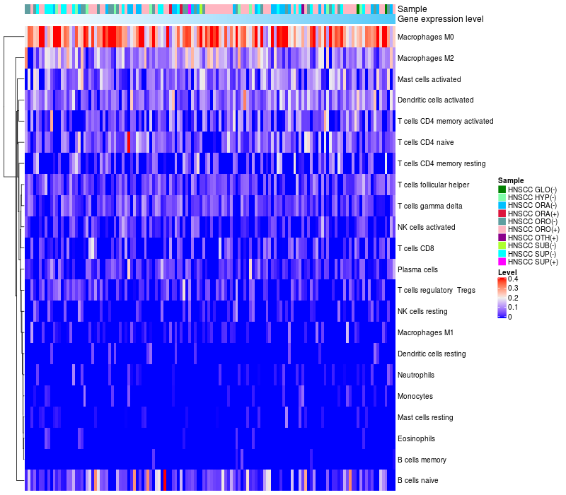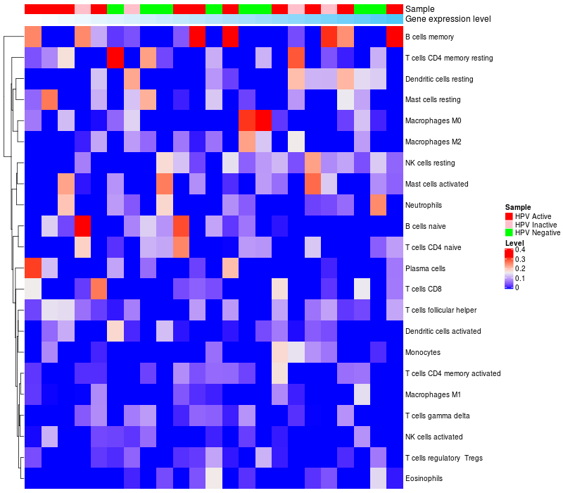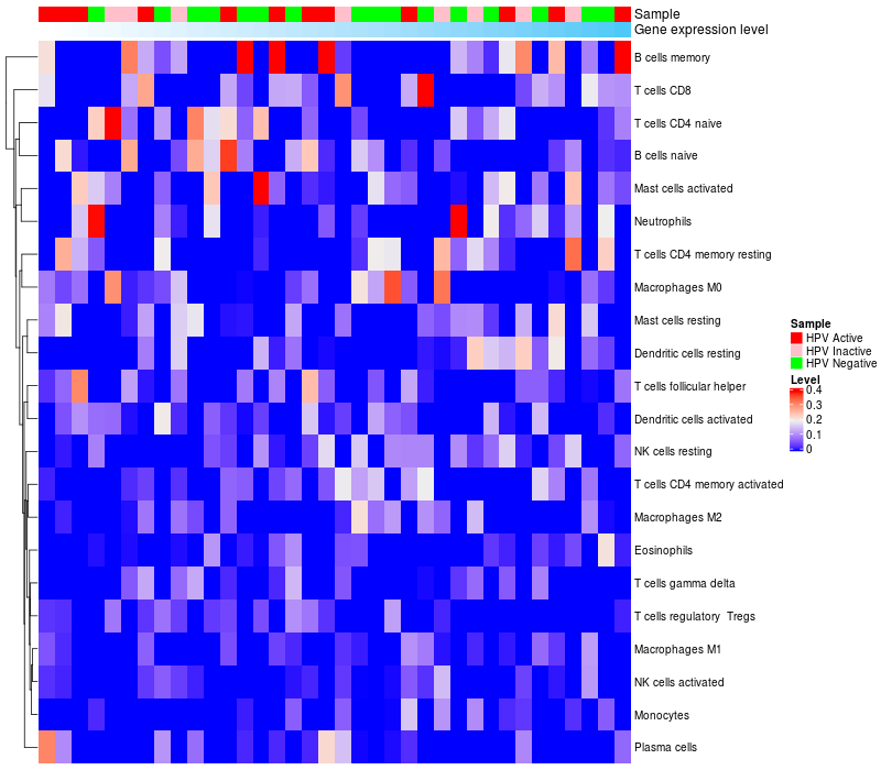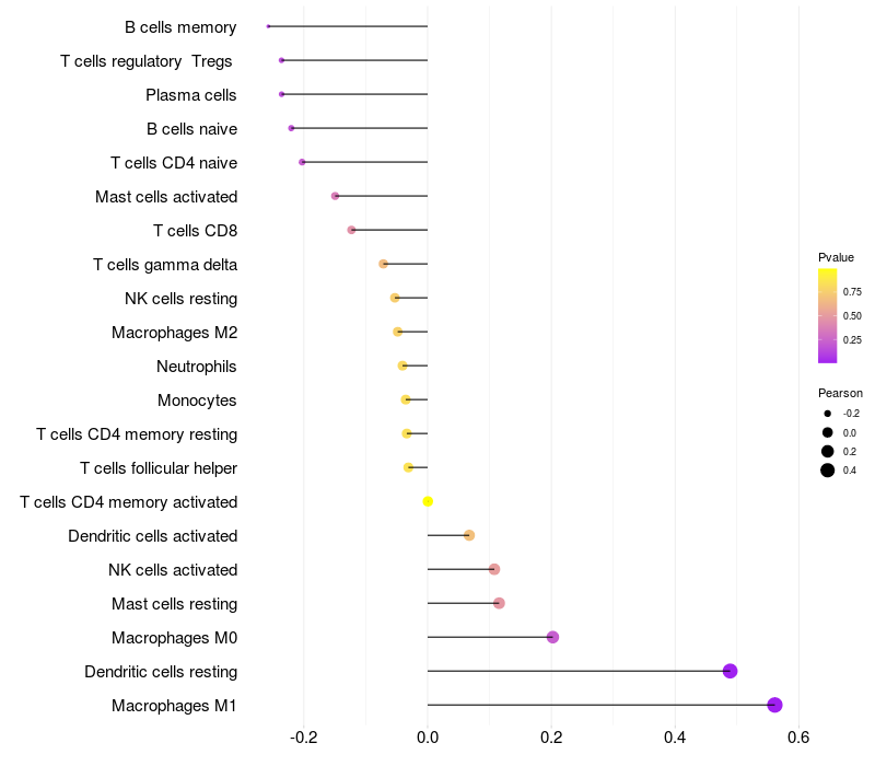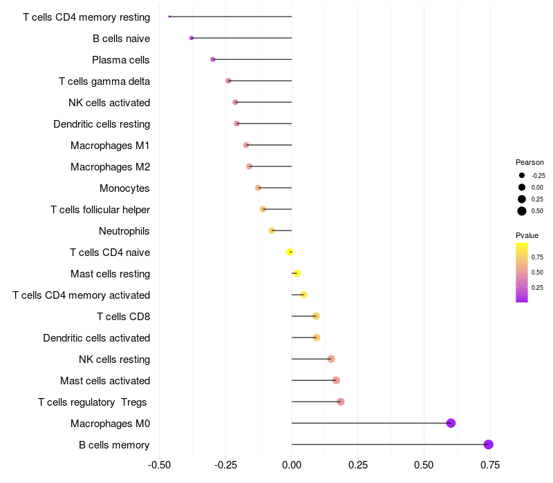 Lollipop of ETS2 expression and immune infiltrating cell level correlation result in HPV+ samples
