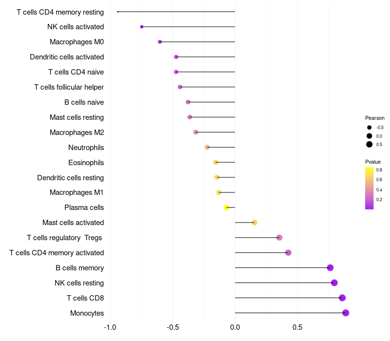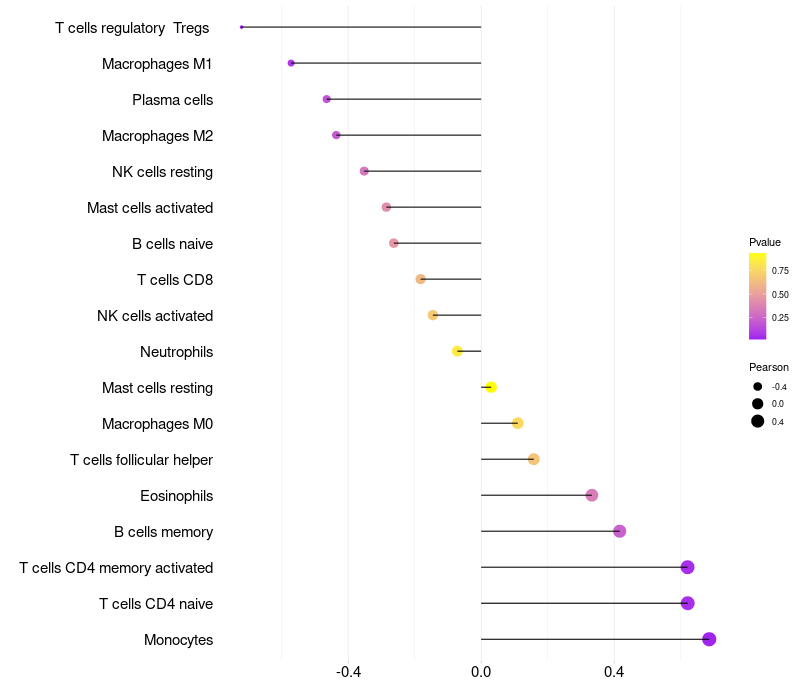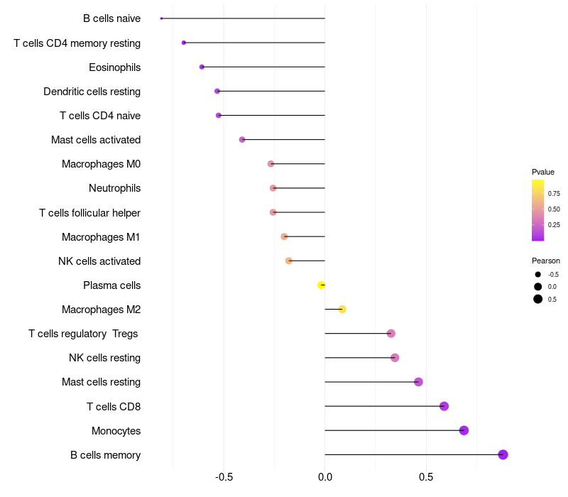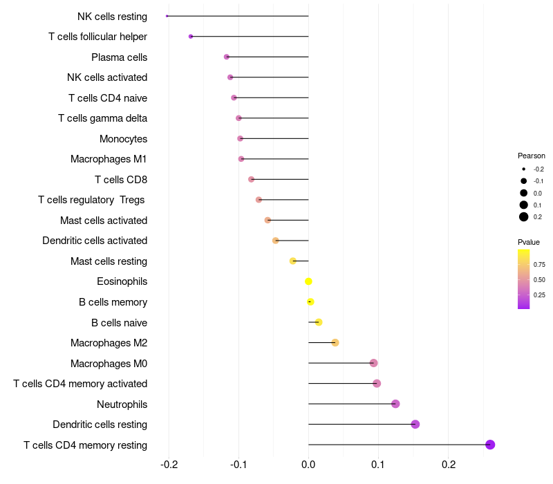 Lollipop of ETV3 expression and immune infiltrating cell level correlation result in HBV+ Liver cirrhosis samples