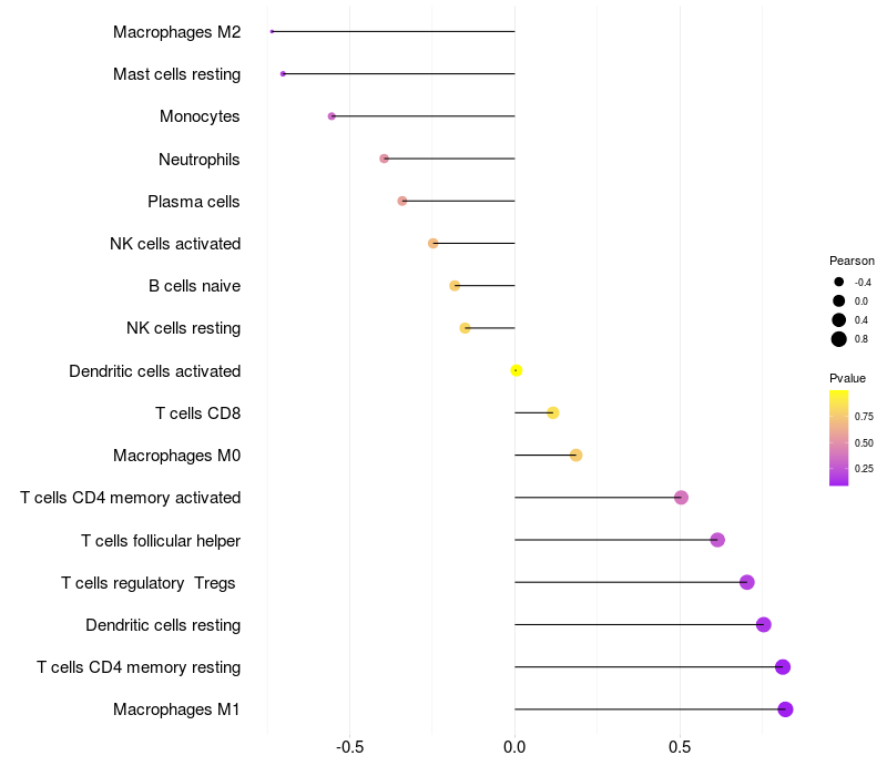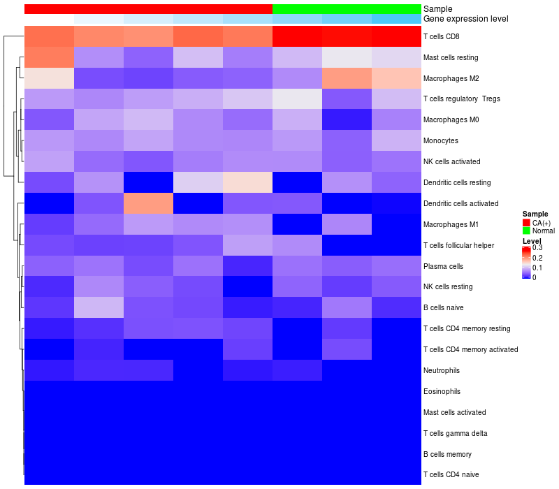 Relationship between gene expression and immune infiltrating cell level