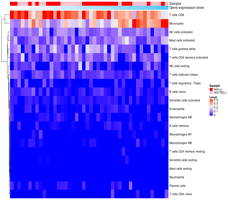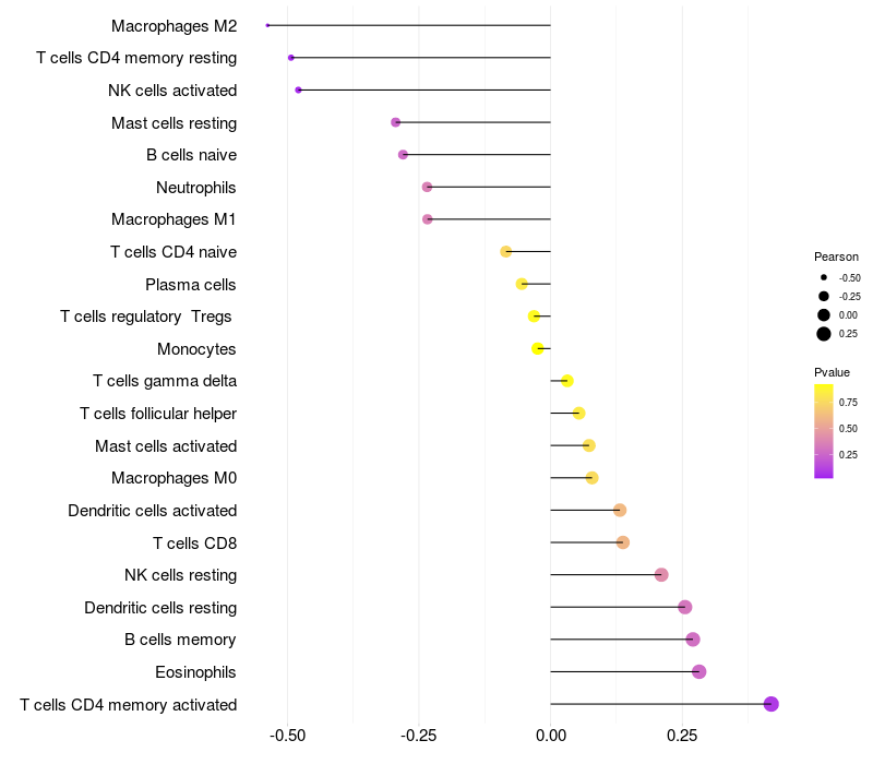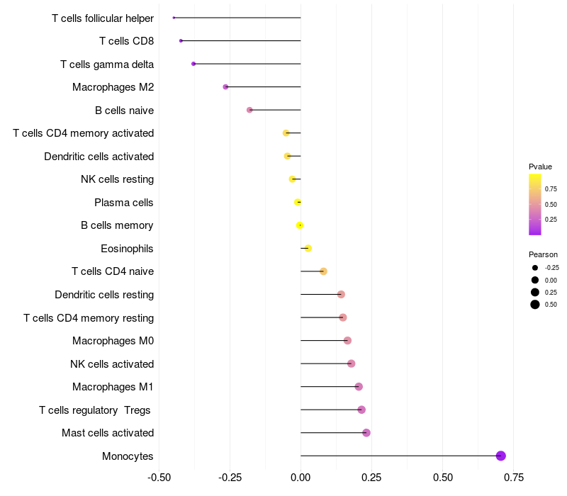 Relationship between gene expression and immune infiltrating cell level