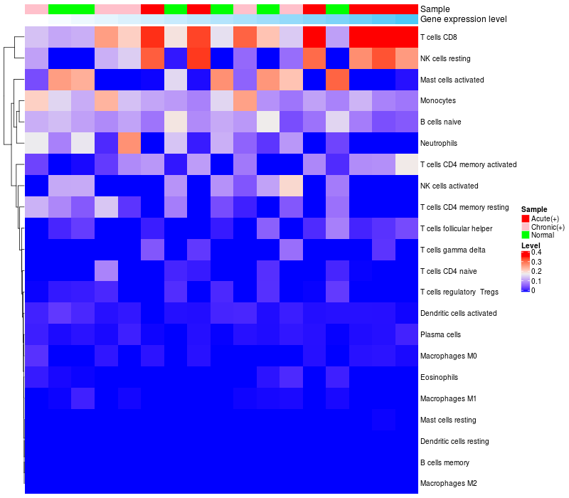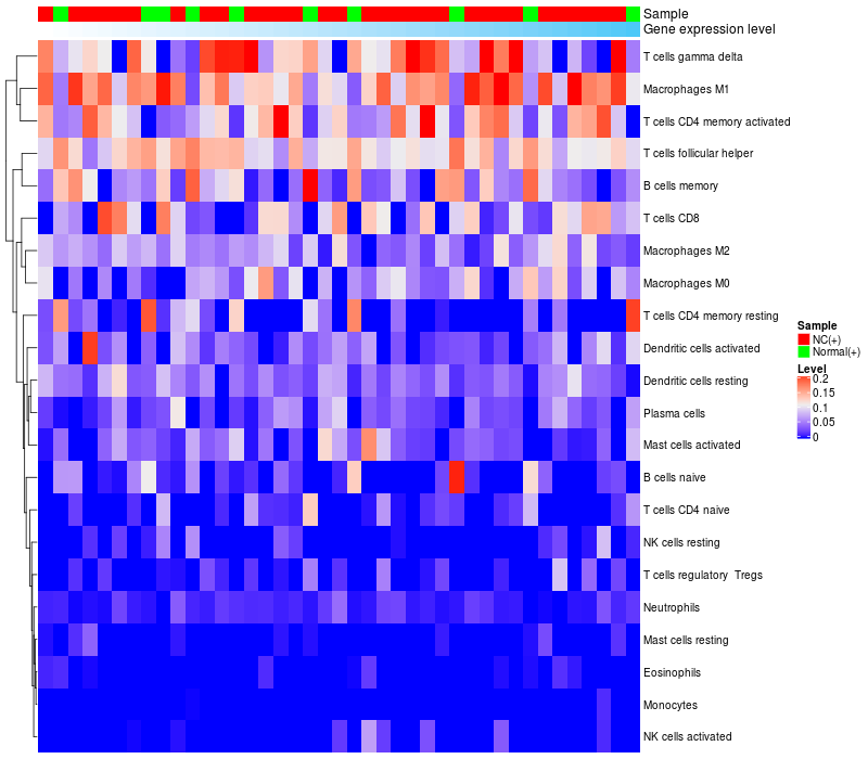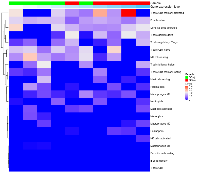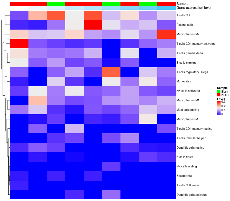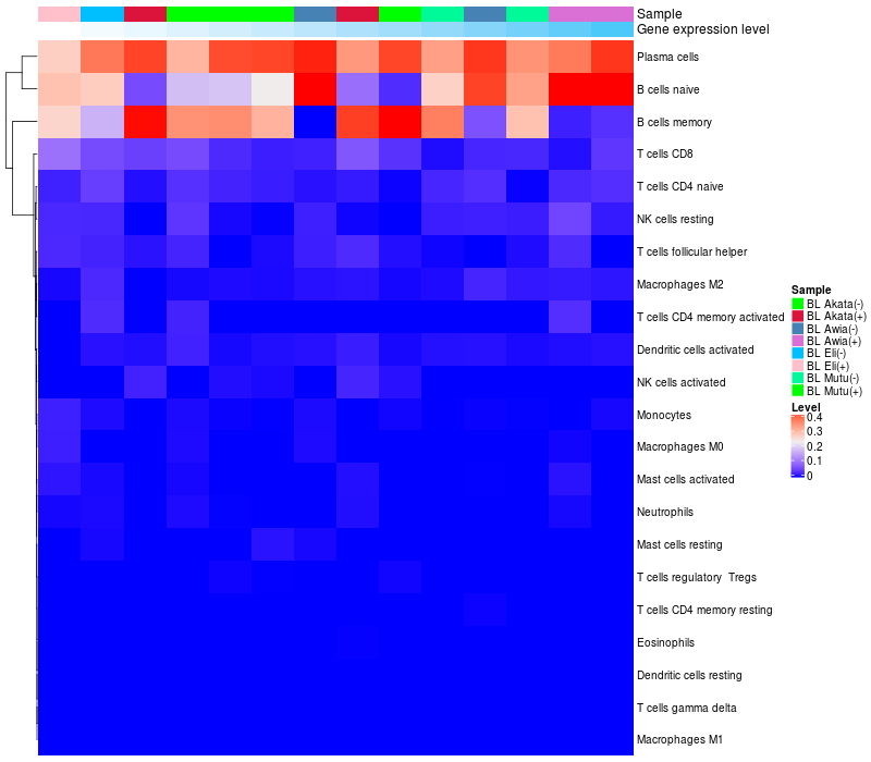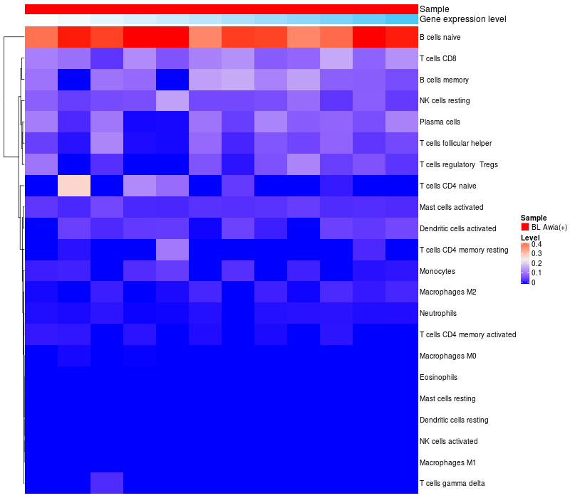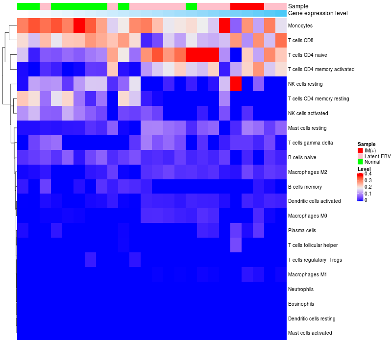 Lollipop of EWSR1 expression and immune infiltrating cell level correlation result in EBV+ samples