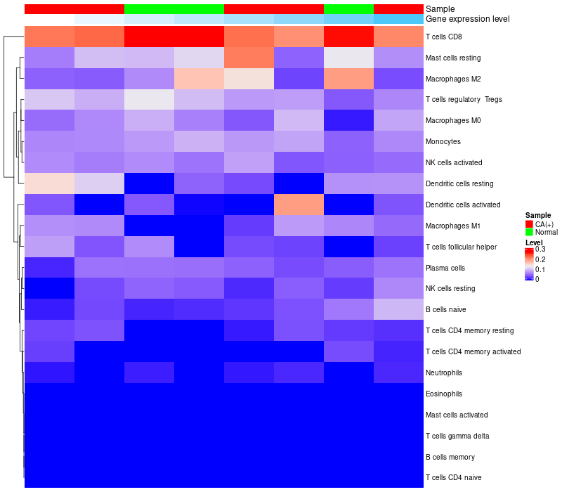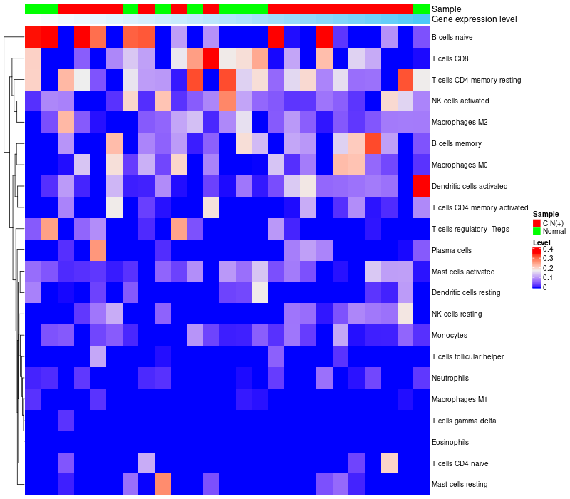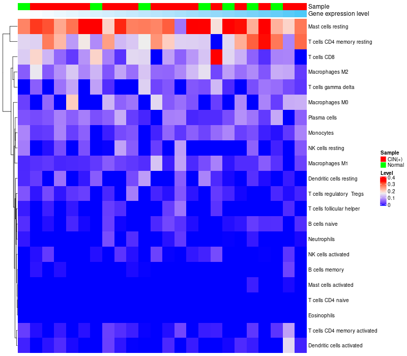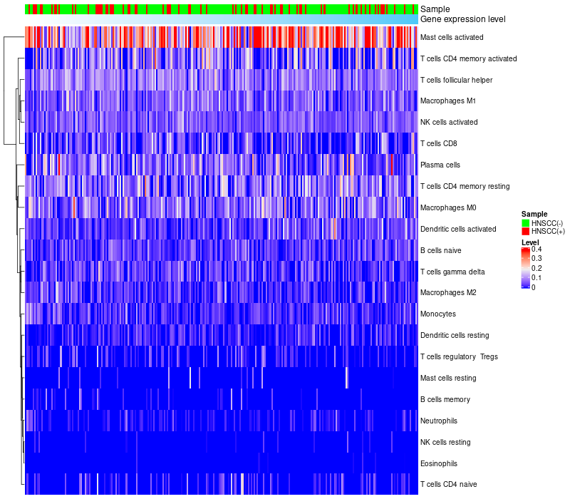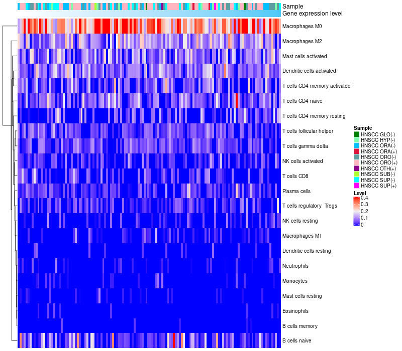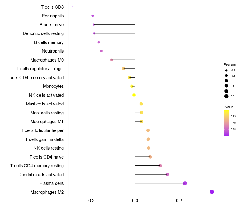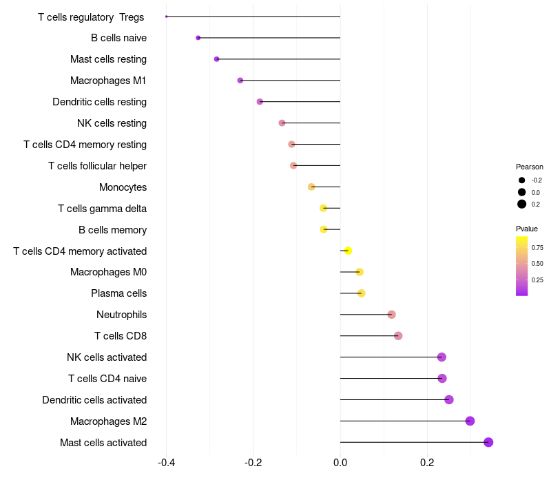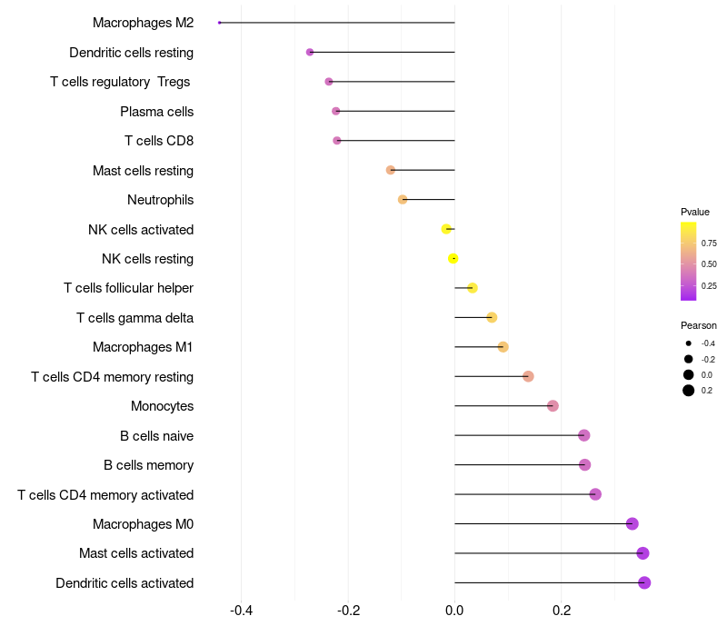 Lollipop of EXOSC2 expression and immune infiltrating cell level correlation result in HPV+ samples