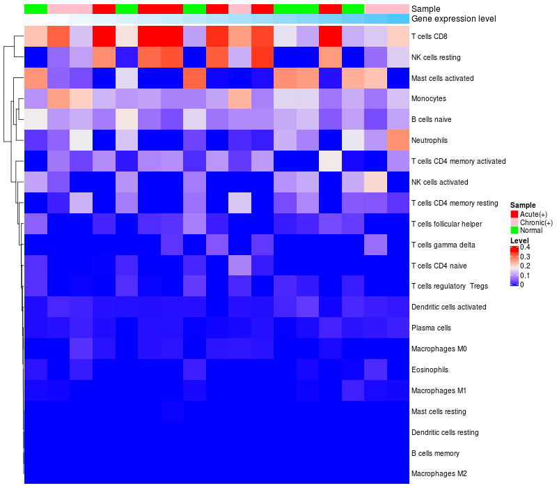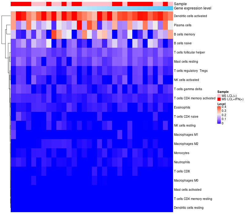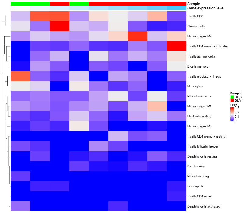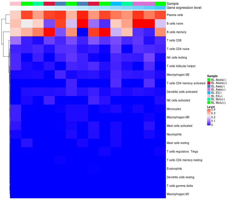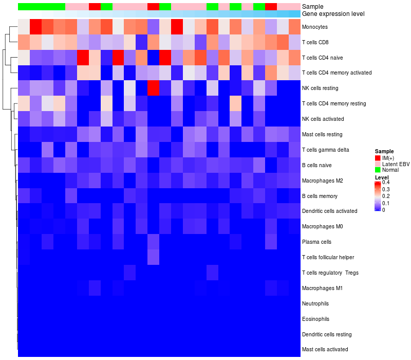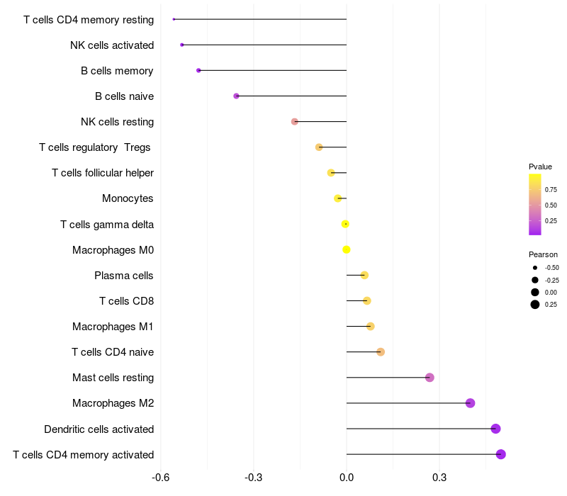 Lollipop of EYS expression and immune infiltrating cell level correlation result in EBV+ samples