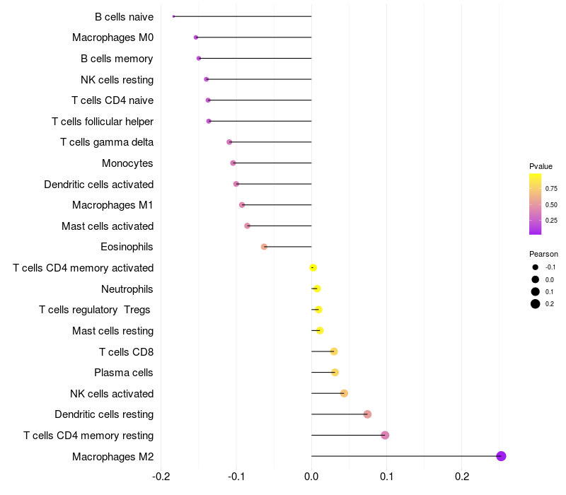 Lollipop of F13A1 expression and immune infiltrating cell level correlation result in HBV+ samples