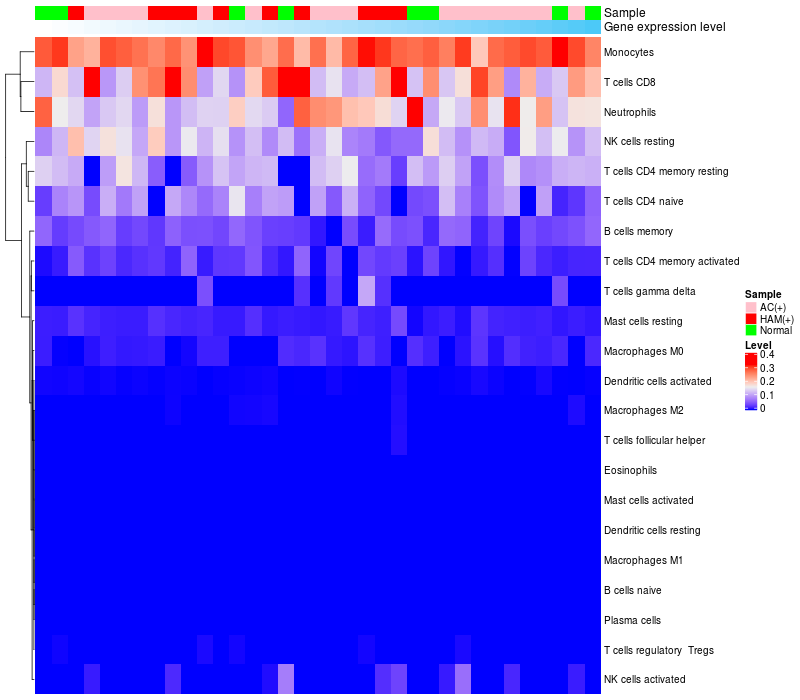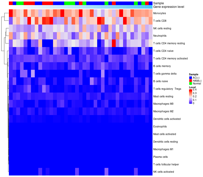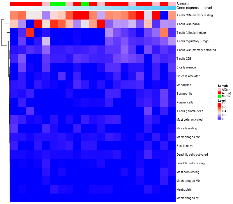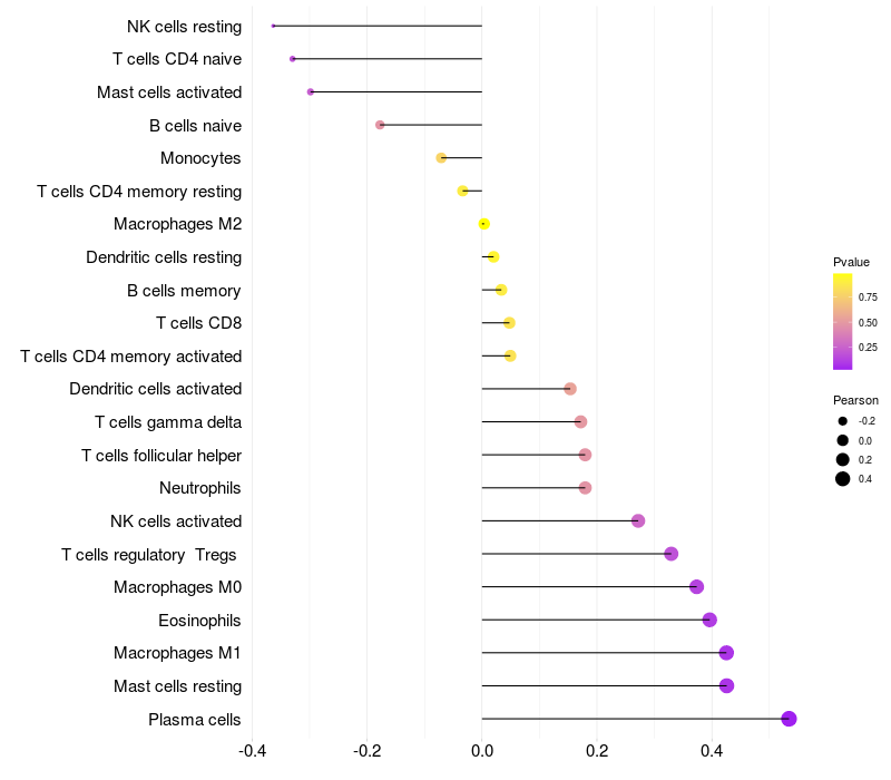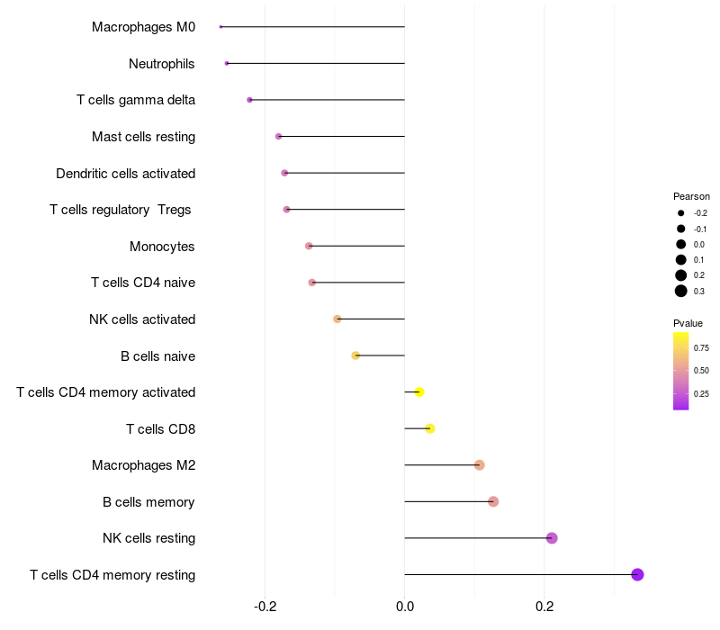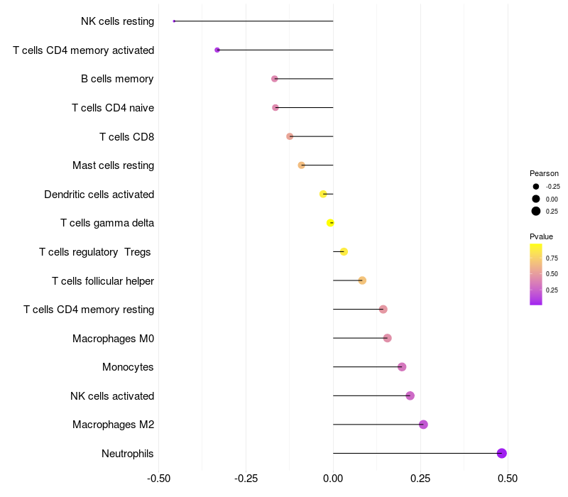 Lollipop of FADS3 expression and immune infiltrating cell level correlation result in HTLV1+ samples