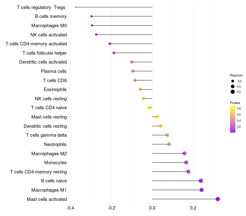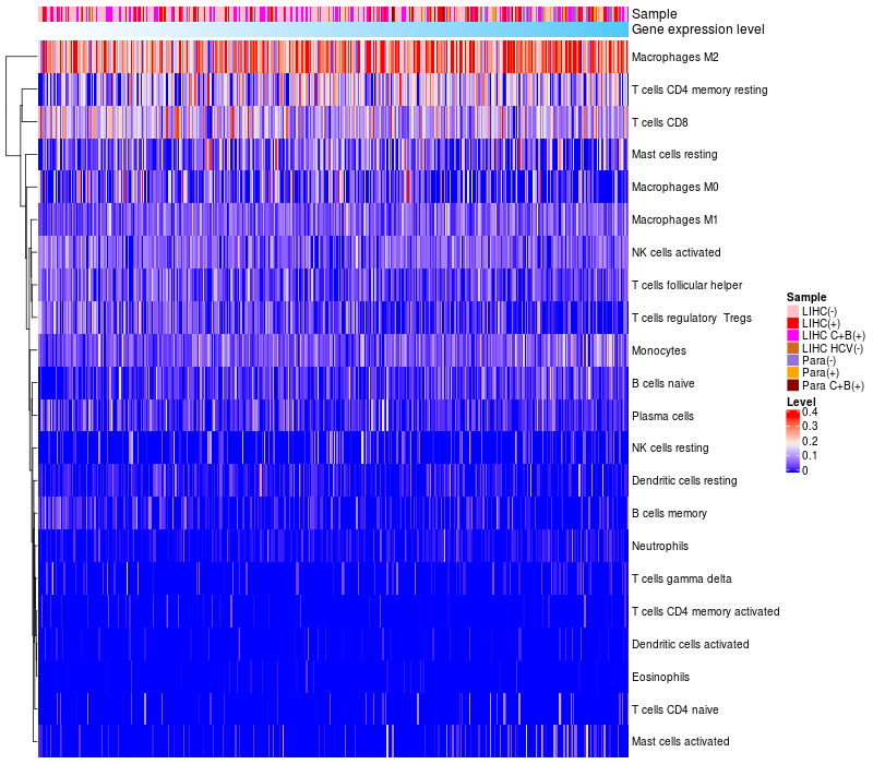 Relationship between gene expression and immune infiltrating cell level