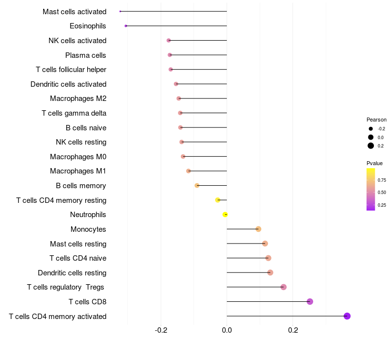 Relationship between gene expression and immune infiltrating cell level