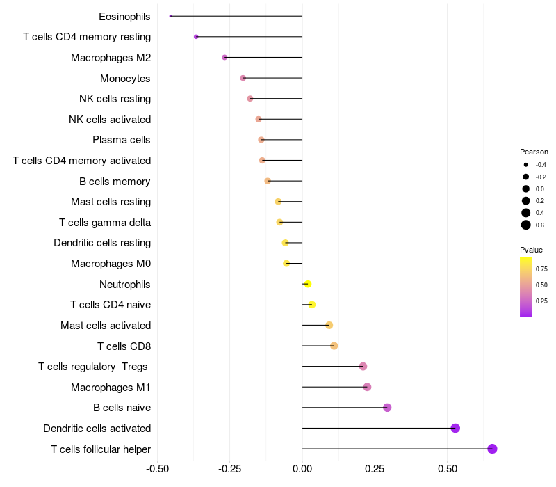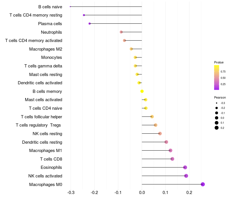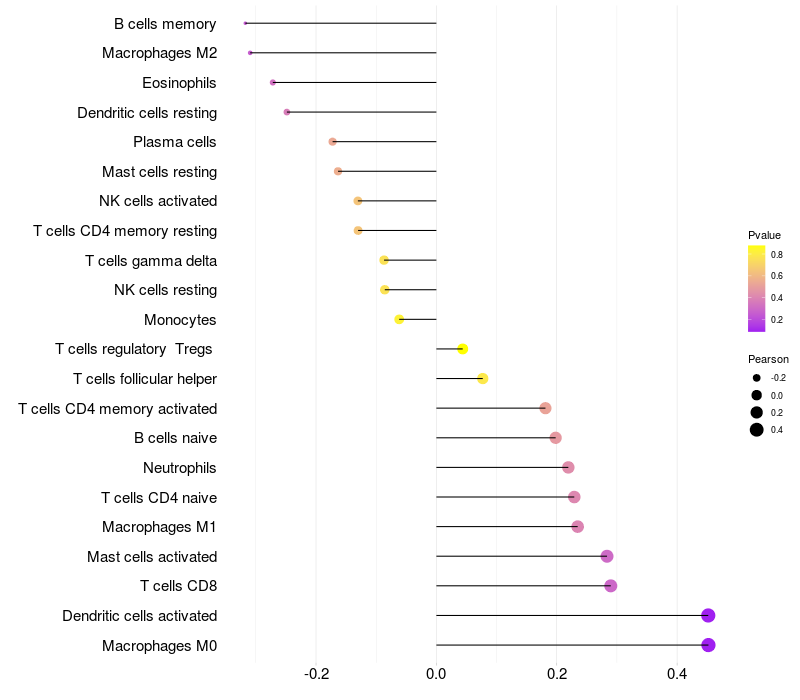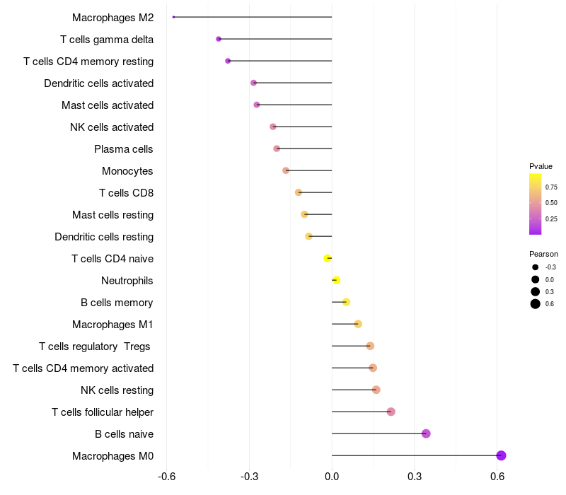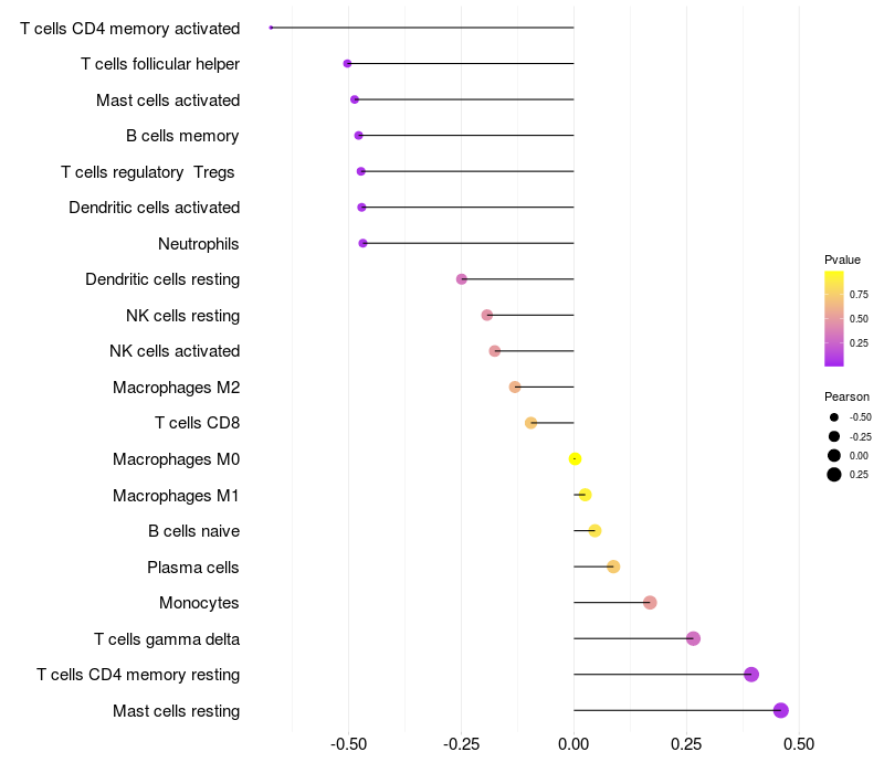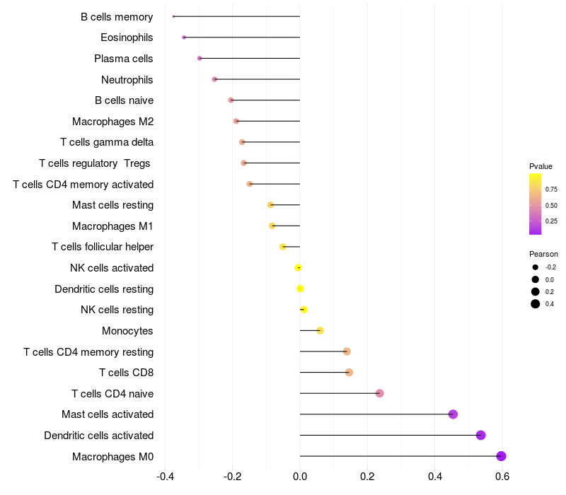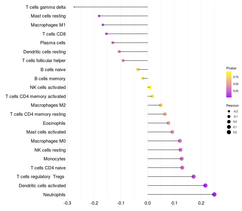 HeatMap of cell type fractions in all samples Lollipop of FAM156A expression and immune infiltrating cell level correlation result in HPV+ samples