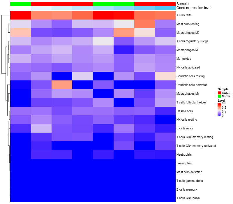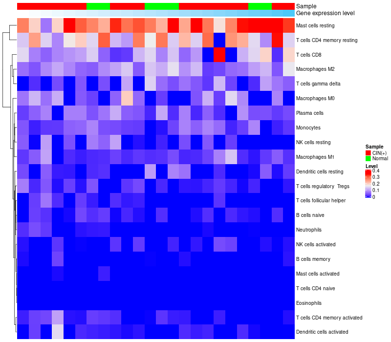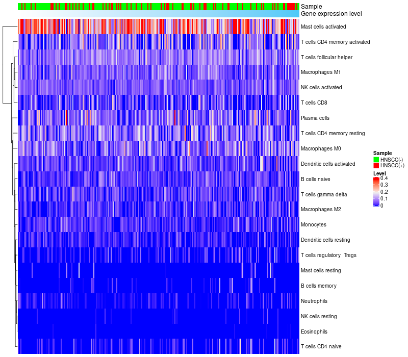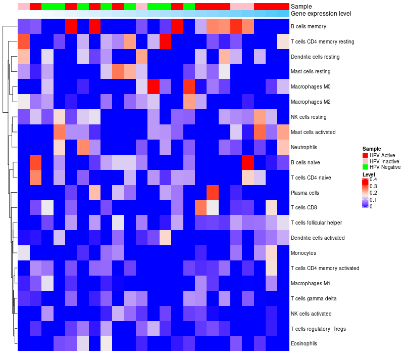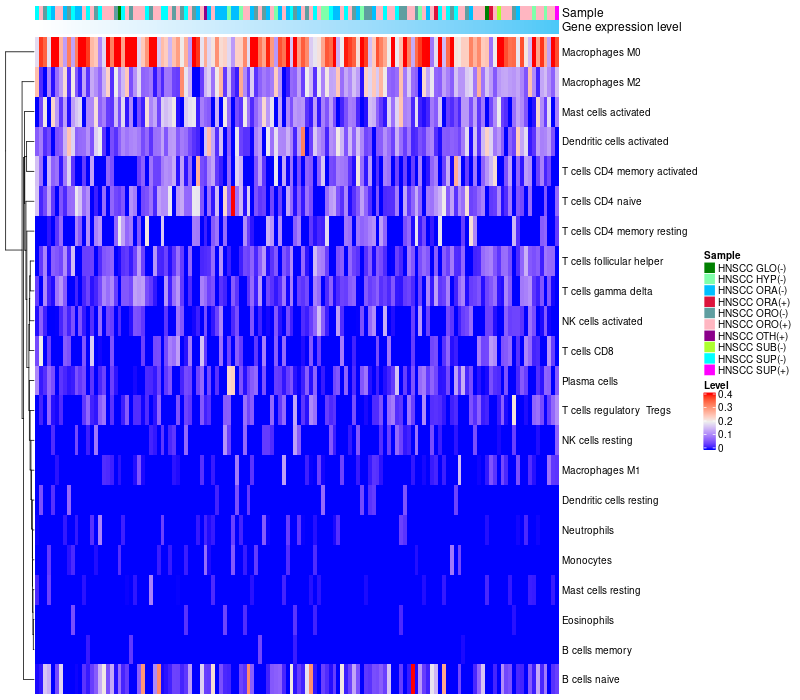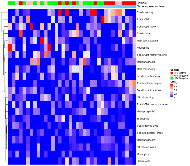 Lollipop of FAM156B expression and immune infiltrating cell level correlation result in HPV+ samples