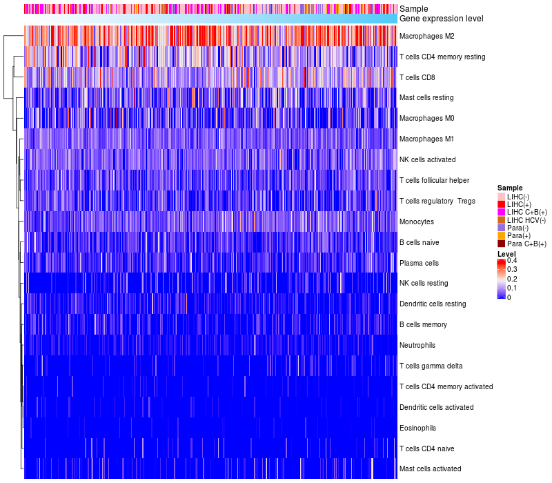 Relationship between gene expression and immune infiltrating cell level
