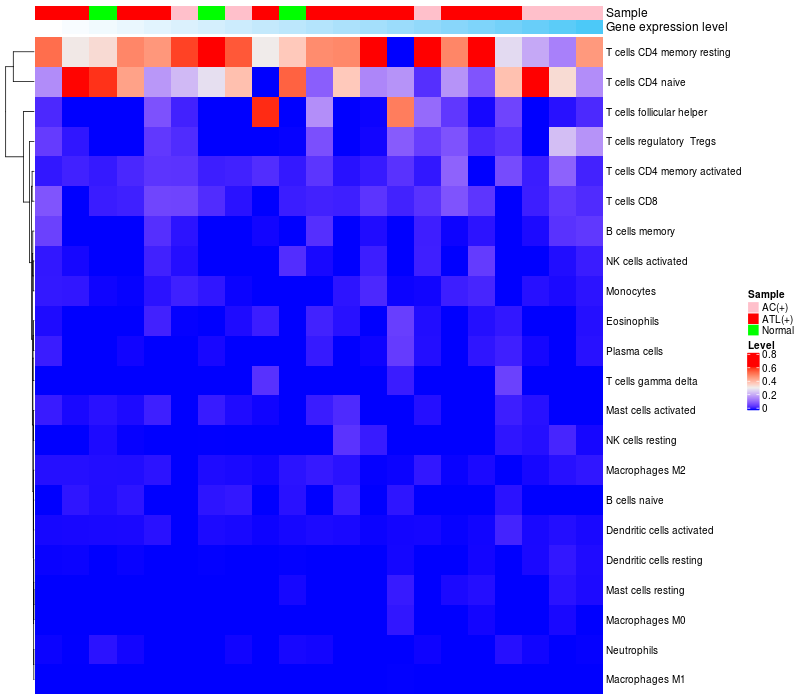 Relationship between gene expression and immune infiltrating cell level