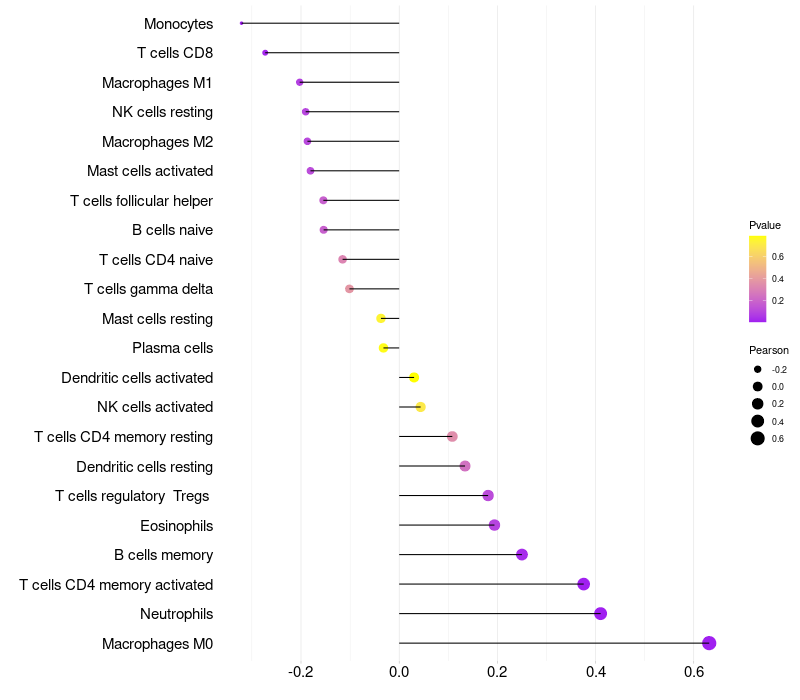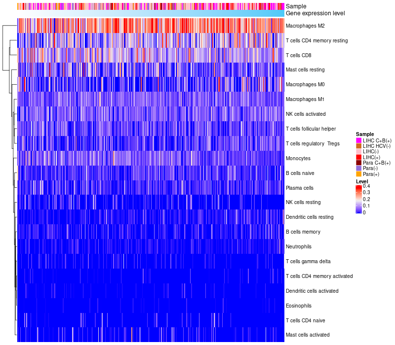 Relationship between gene expression and immune infiltrating cell level