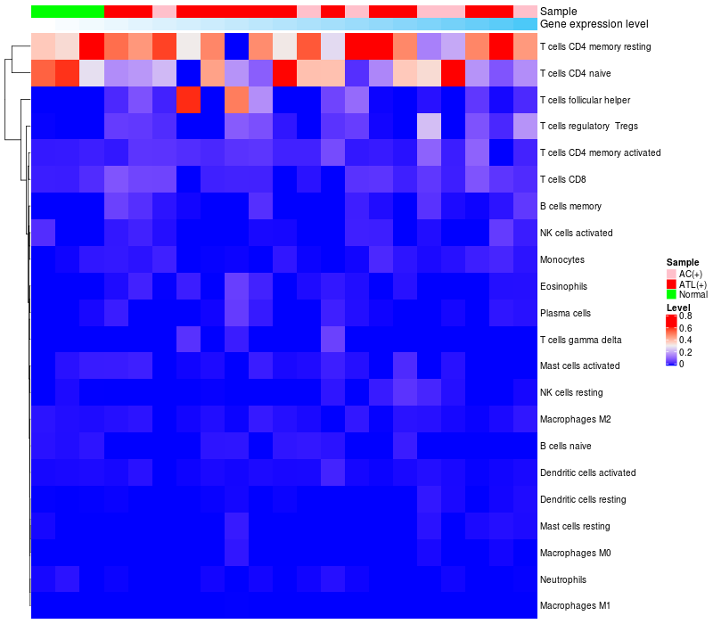Relationship between gene expression and immune infiltrating cell level