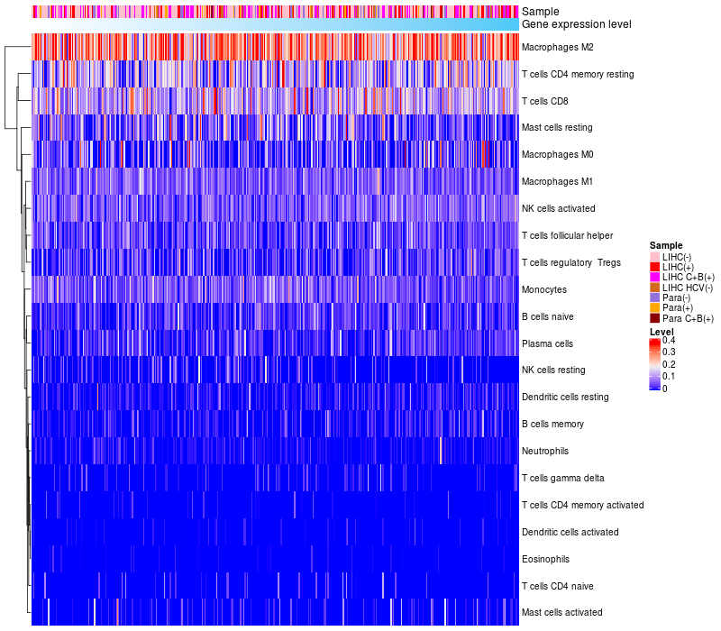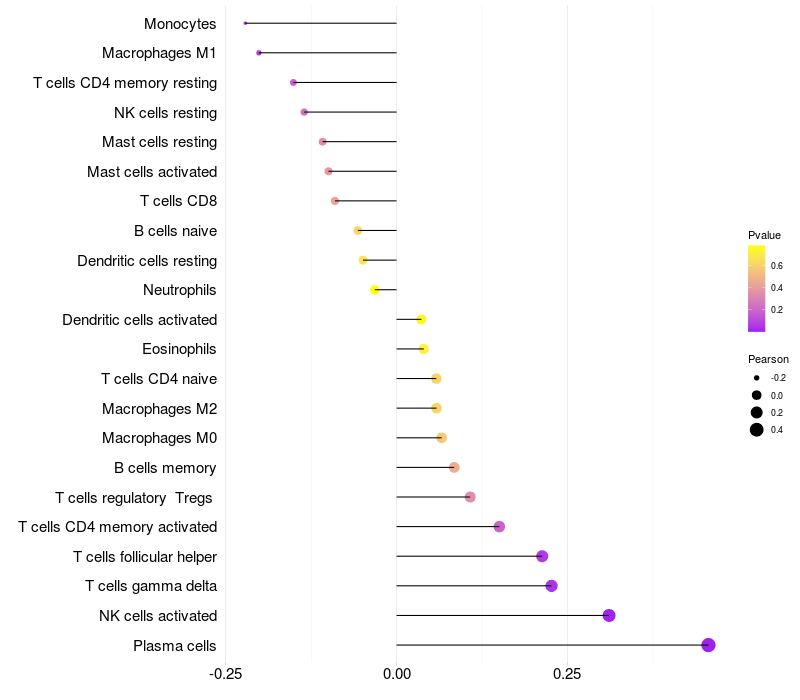Relationship between gene expression and immune infiltrating cell level