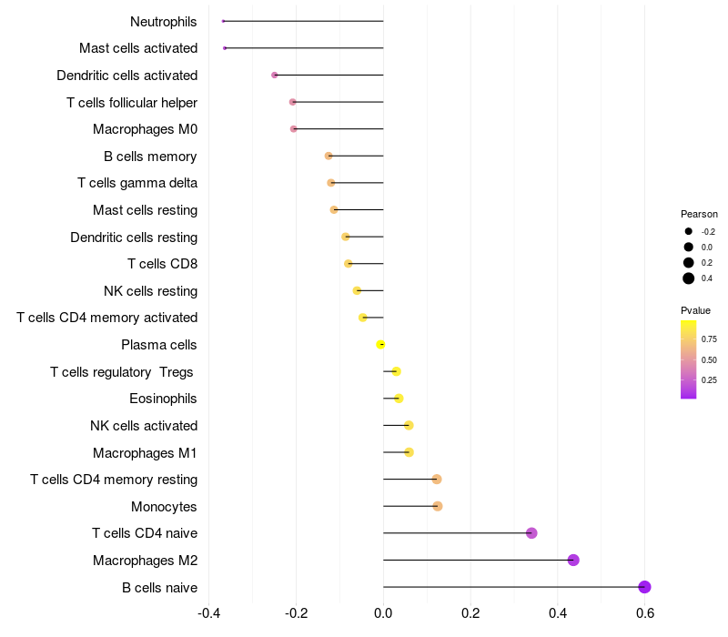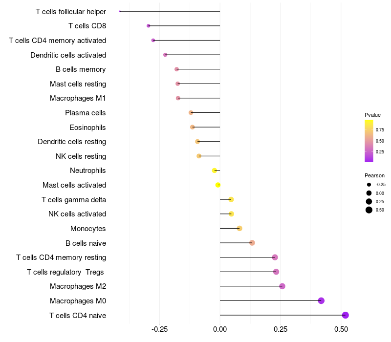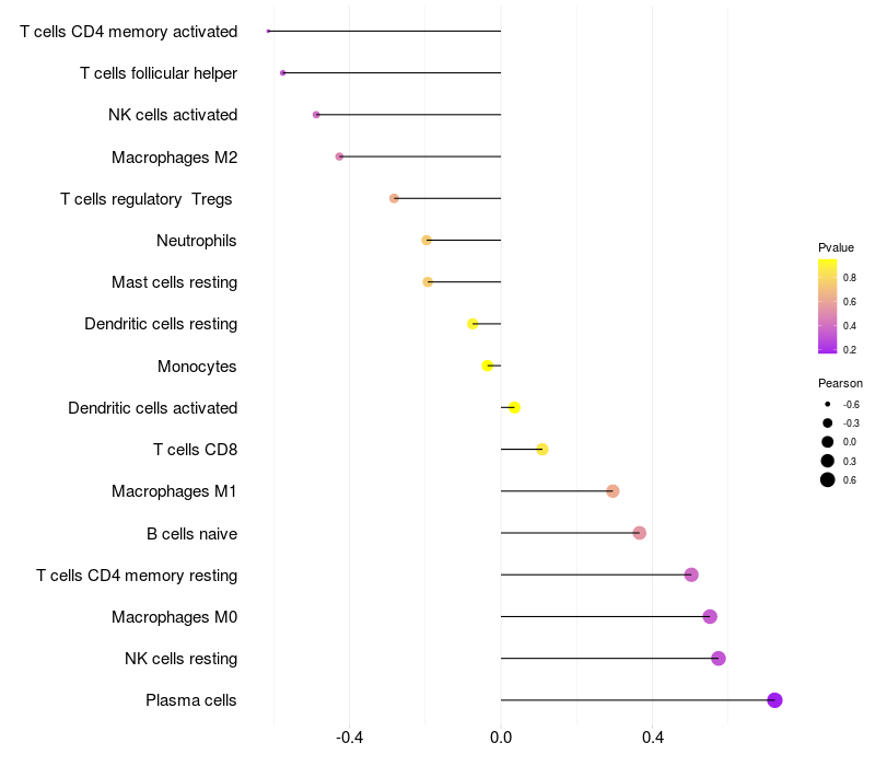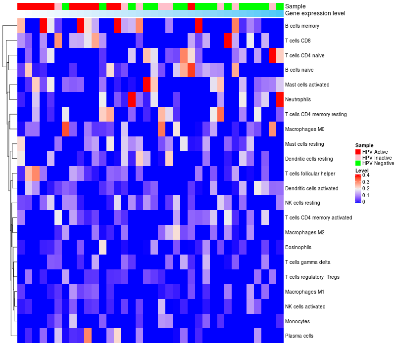HeatMap of cell type fractions in all samples Lollipop of FAM204A expression and immune infiltrating cell level correlation result in HPV+ samples