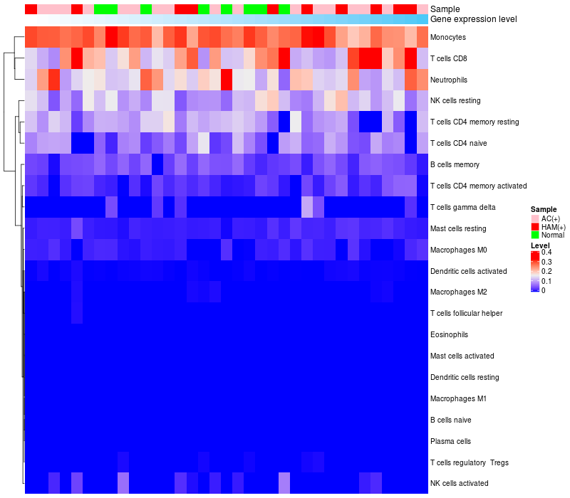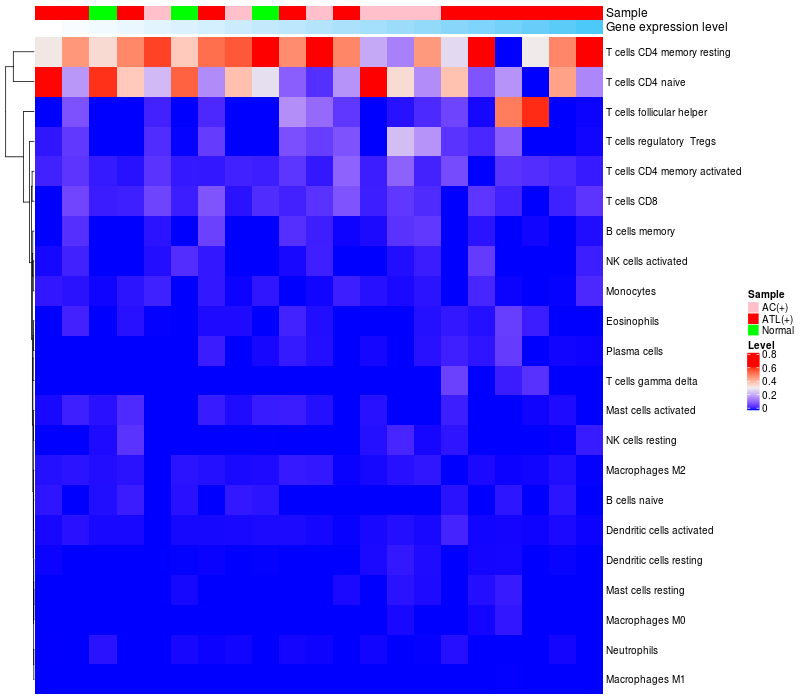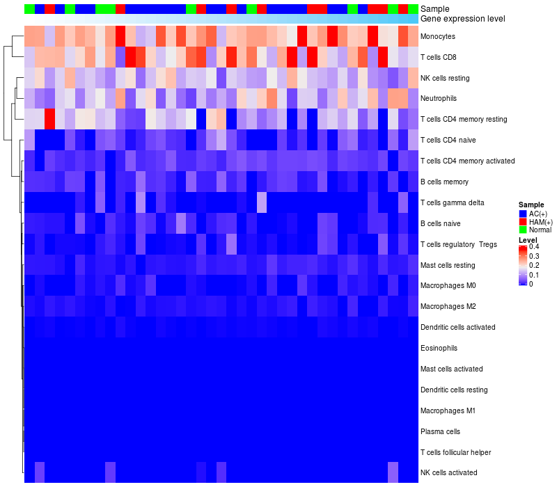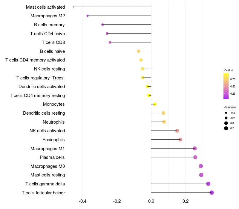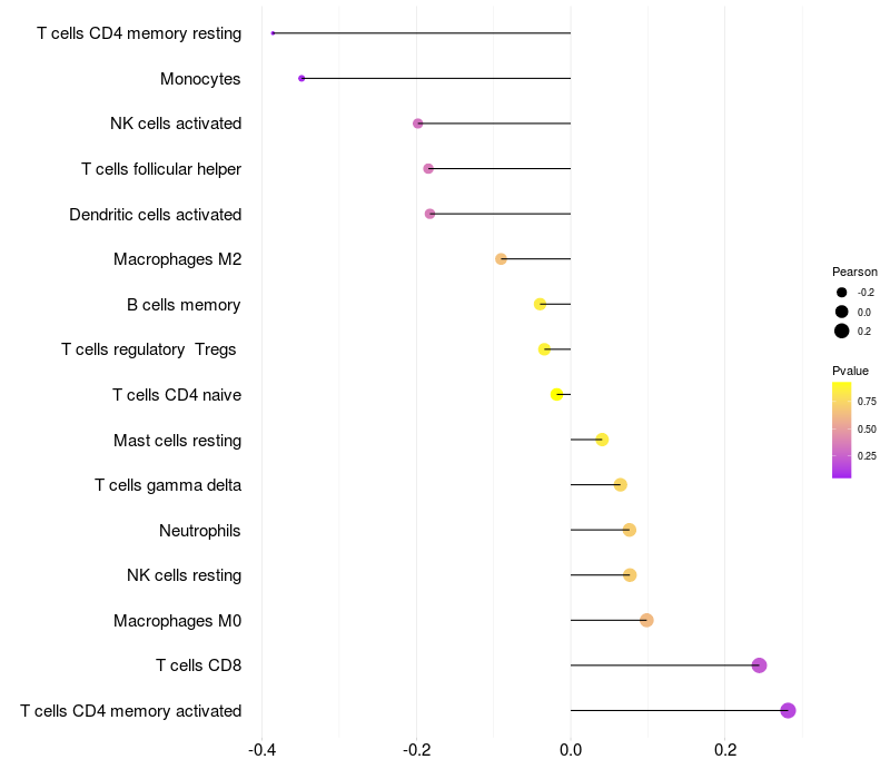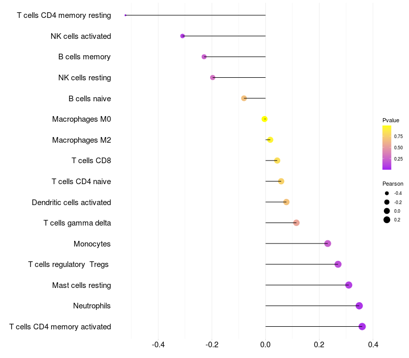 Relationship between gene expression and immune infiltrating cell level