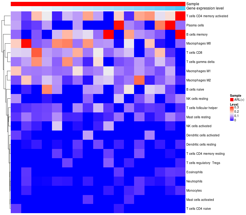 Relationship between gene expression and immune infiltrating cell level