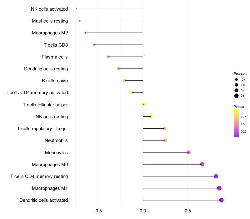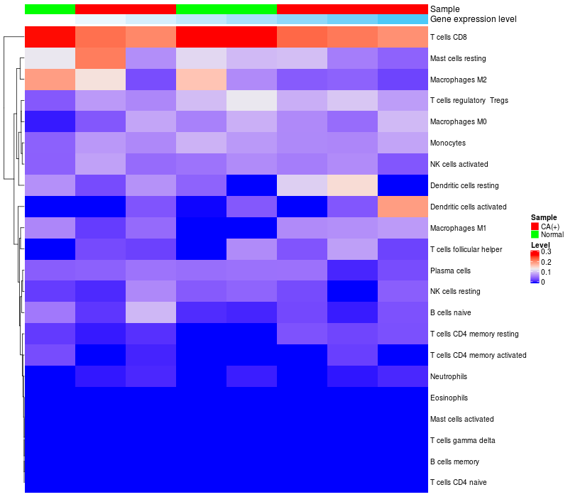 Relationship between gene expression and immune infiltrating cell level