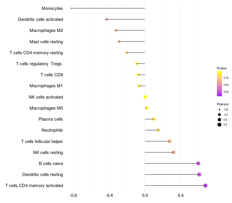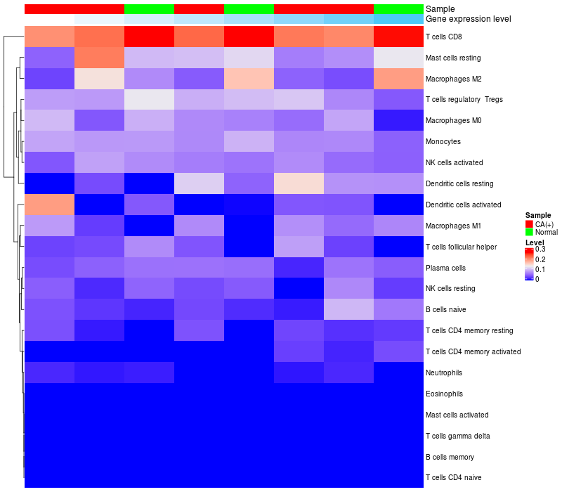 Relationship between gene expression and immune infiltrating cell level
