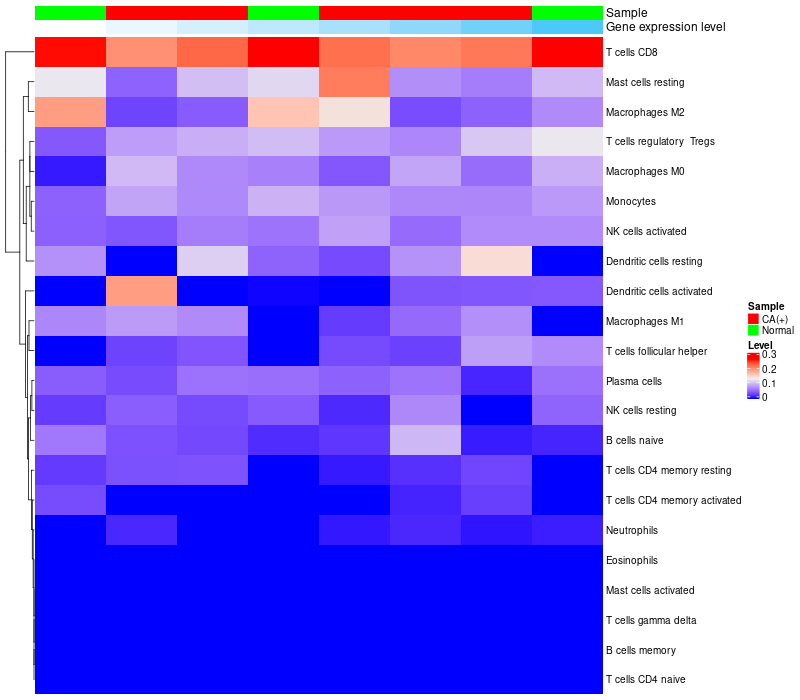 Relationship between gene expression and immune infiltrating cell level