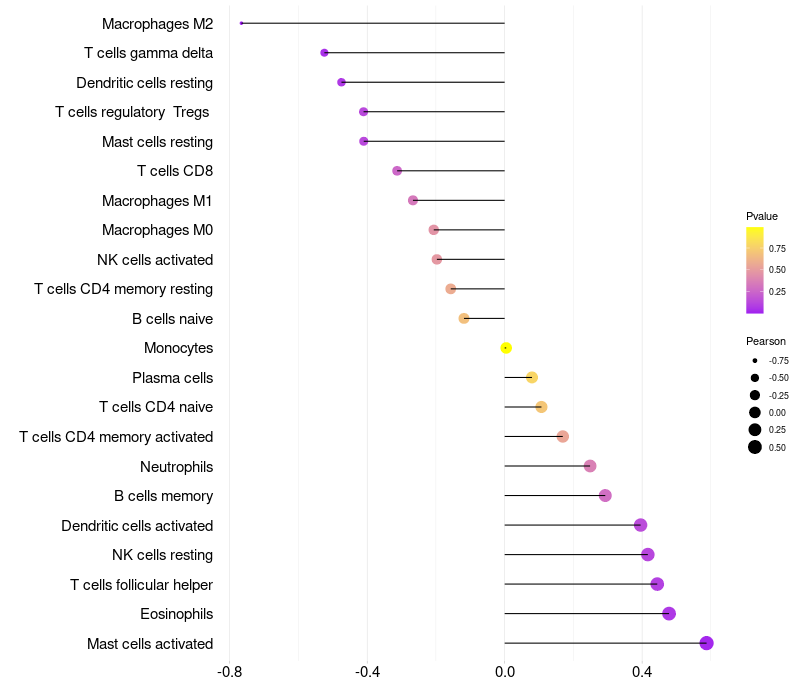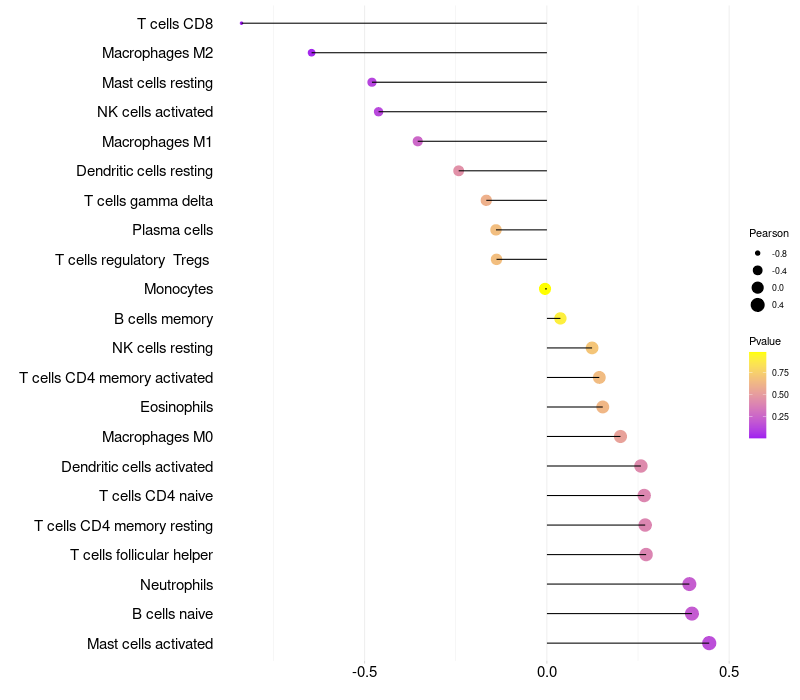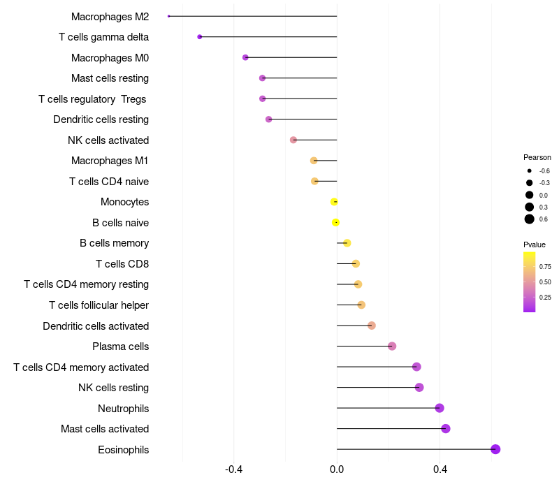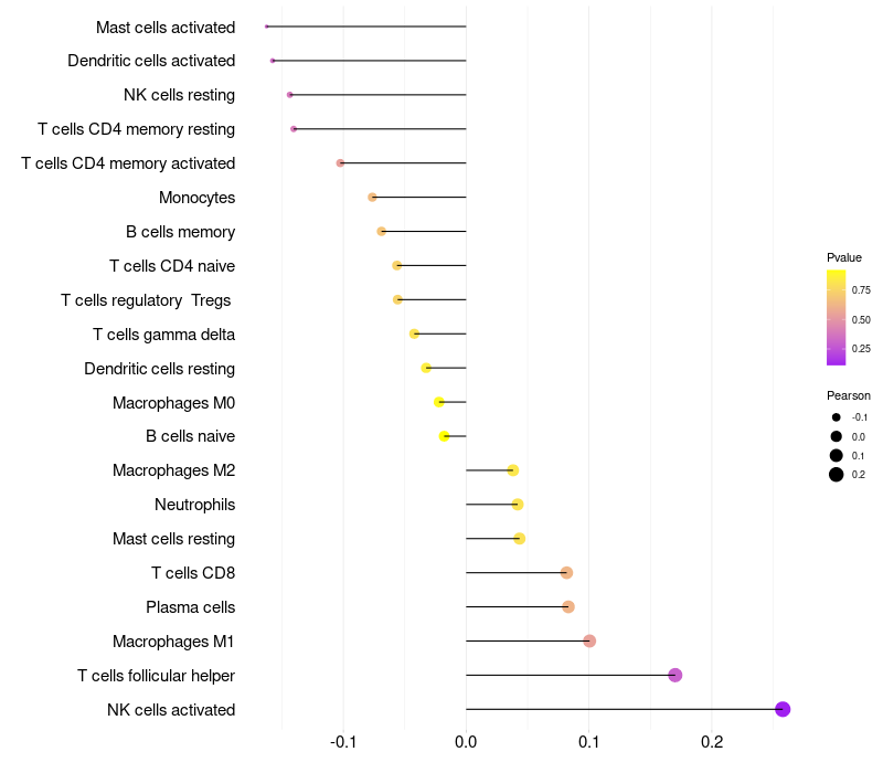 Lollipop of FAM41AY1 expression and immune infiltrating cell level correlation result in HPV+ samples