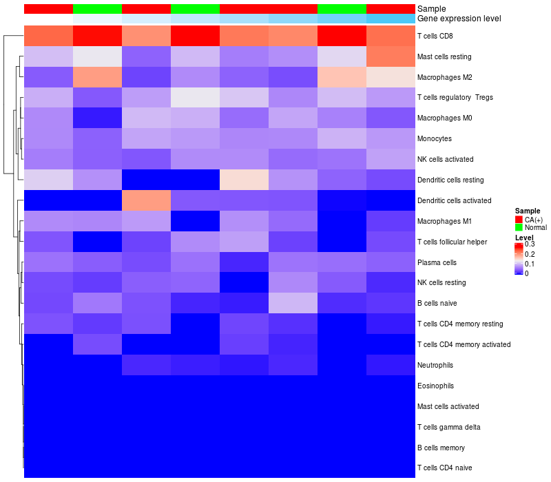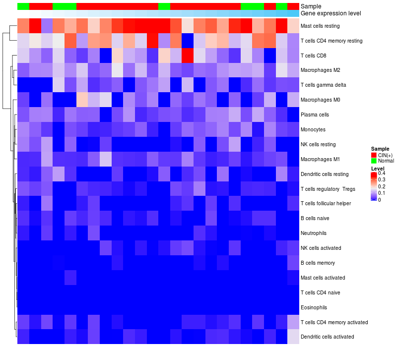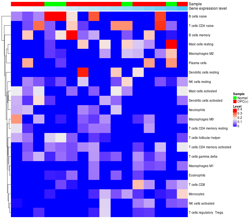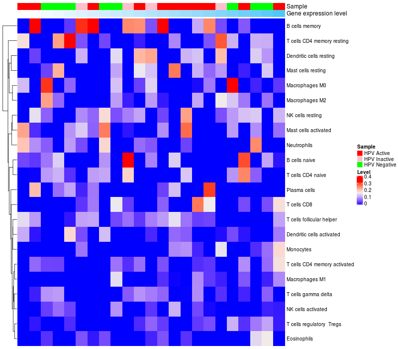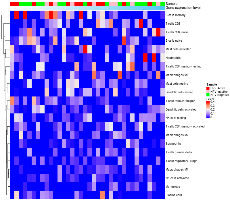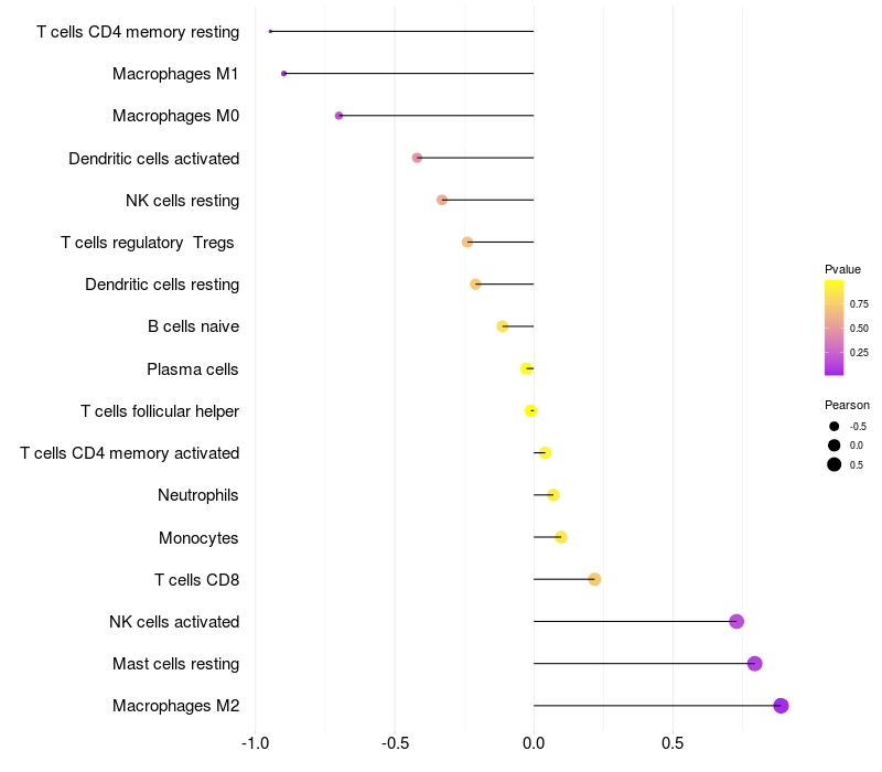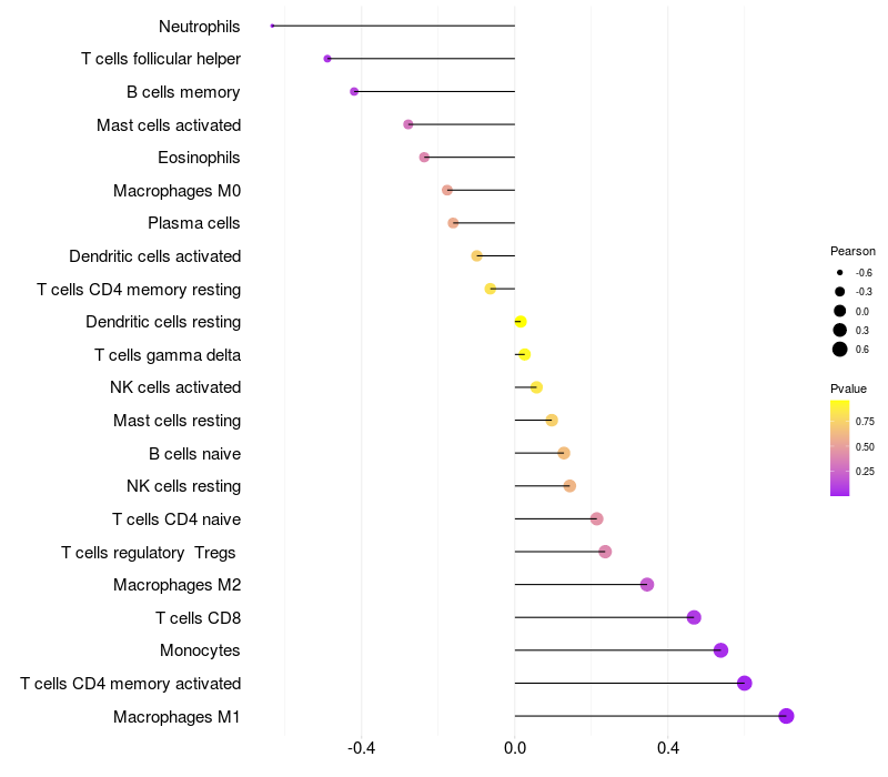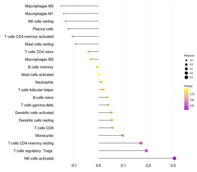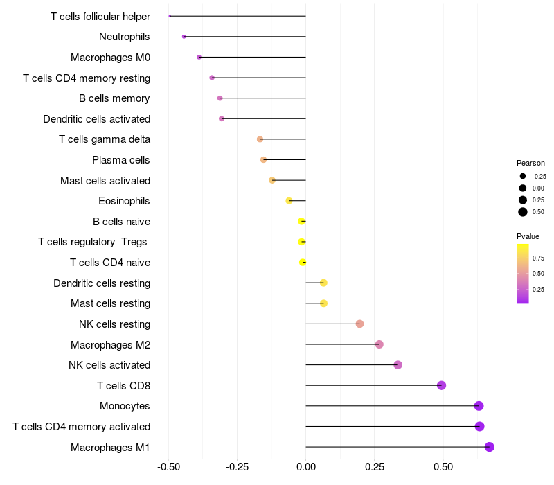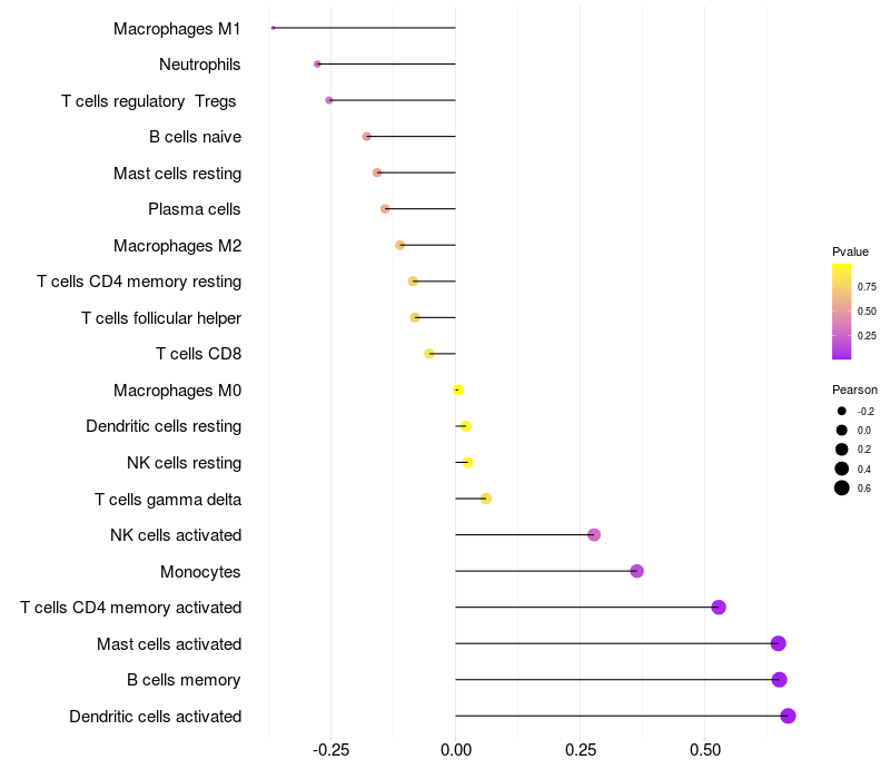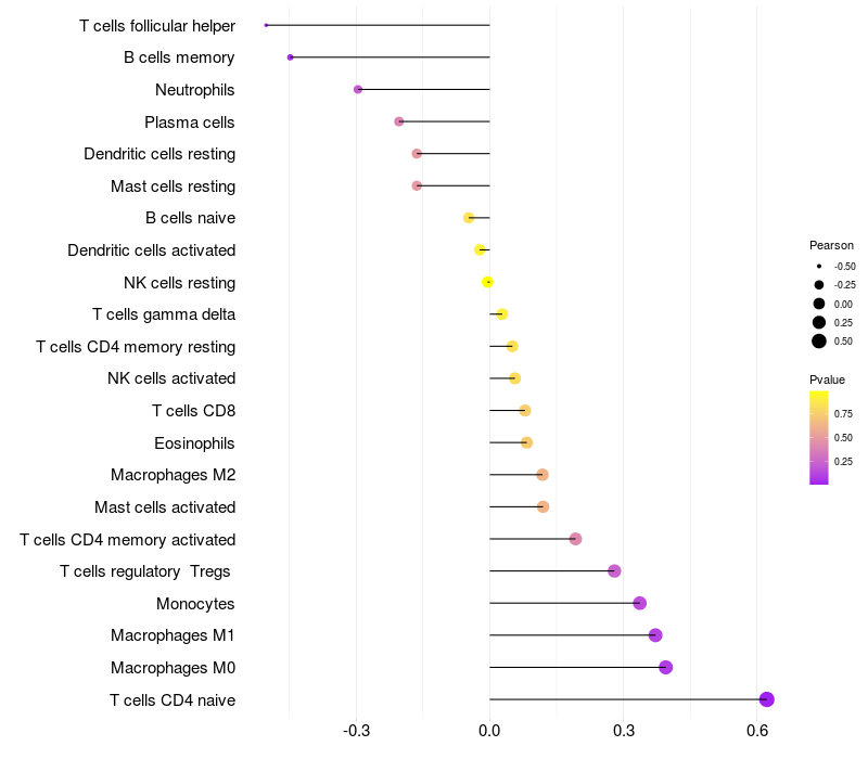 Lollipop of FAM47A expression and immune infiltrating cell level correlation result in HPV+ samples