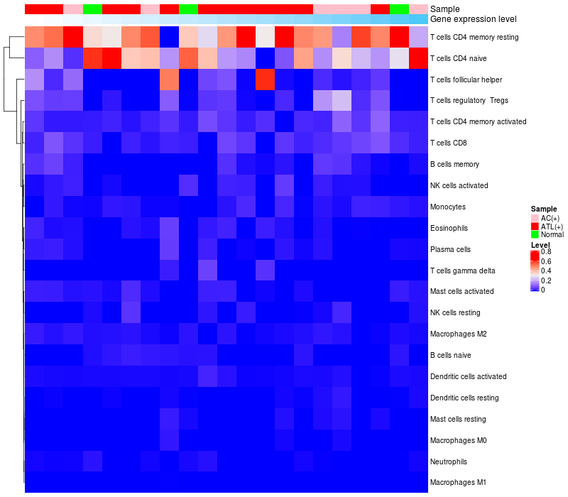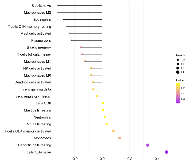 Relationship between gene expression and immune infiltrating cell level