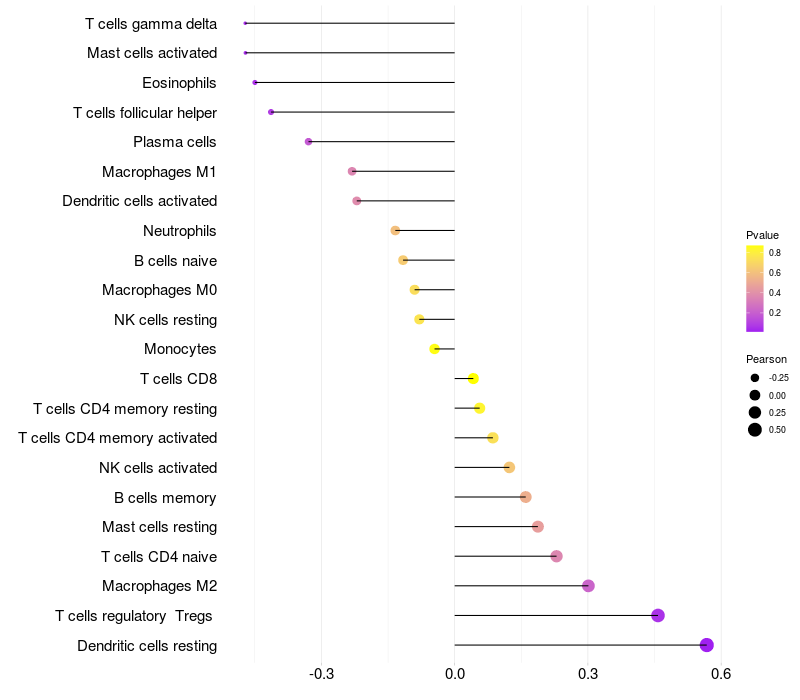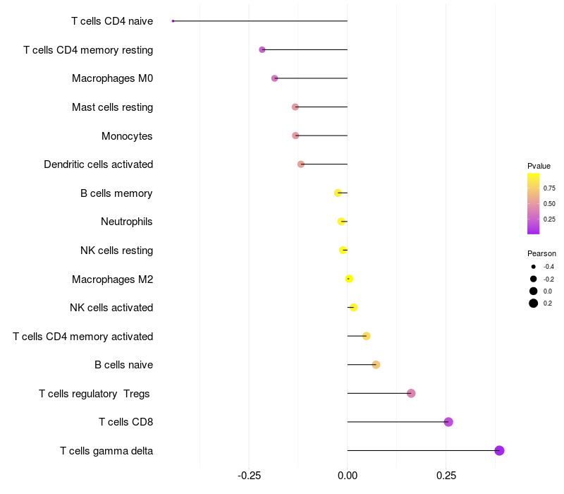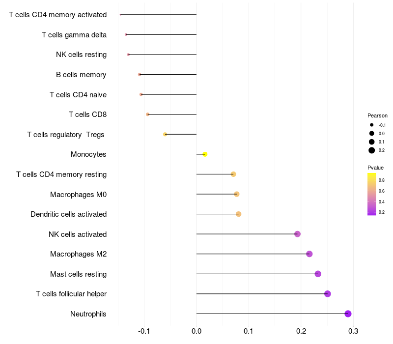 Lollipop of FAM78B expression and immune infiltrating cell level correlation result in HTLV1+ samples