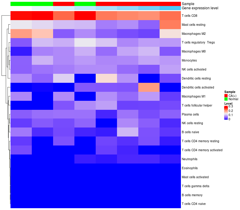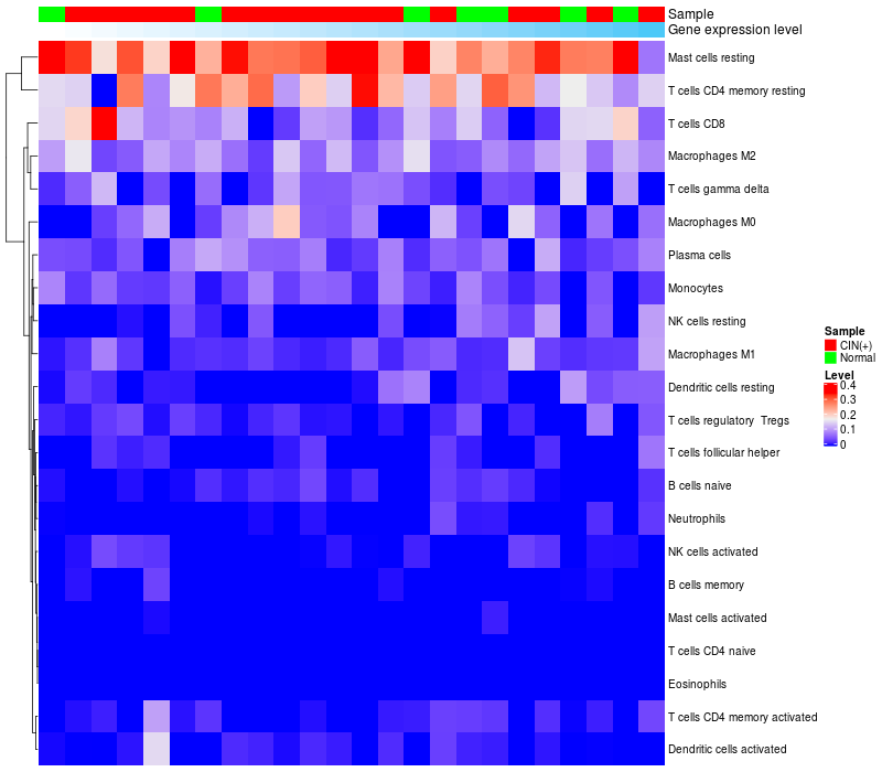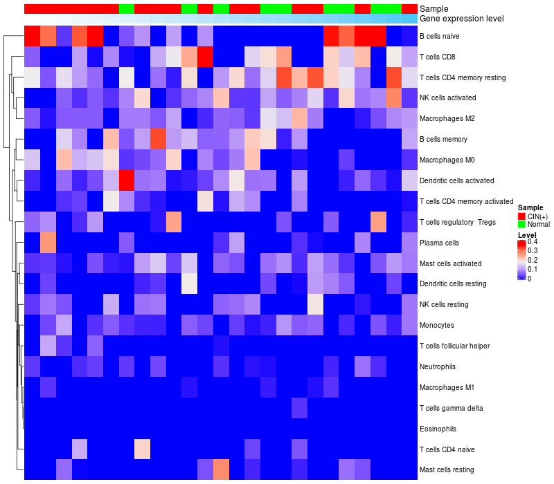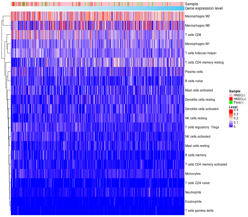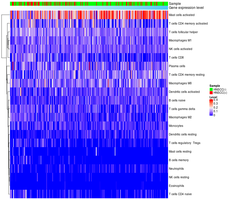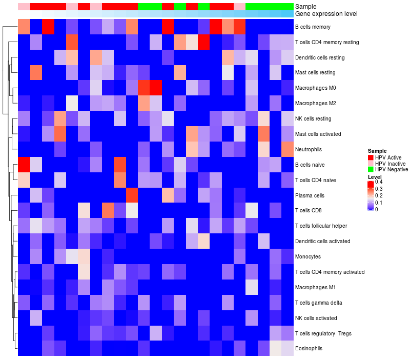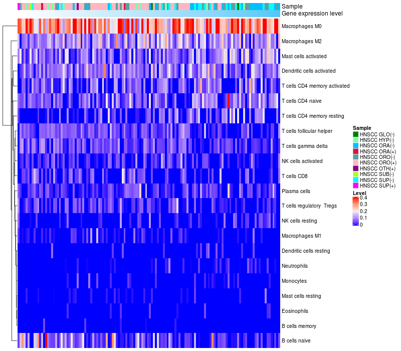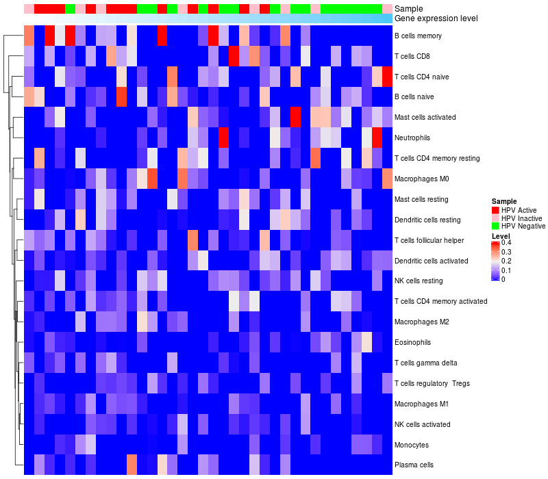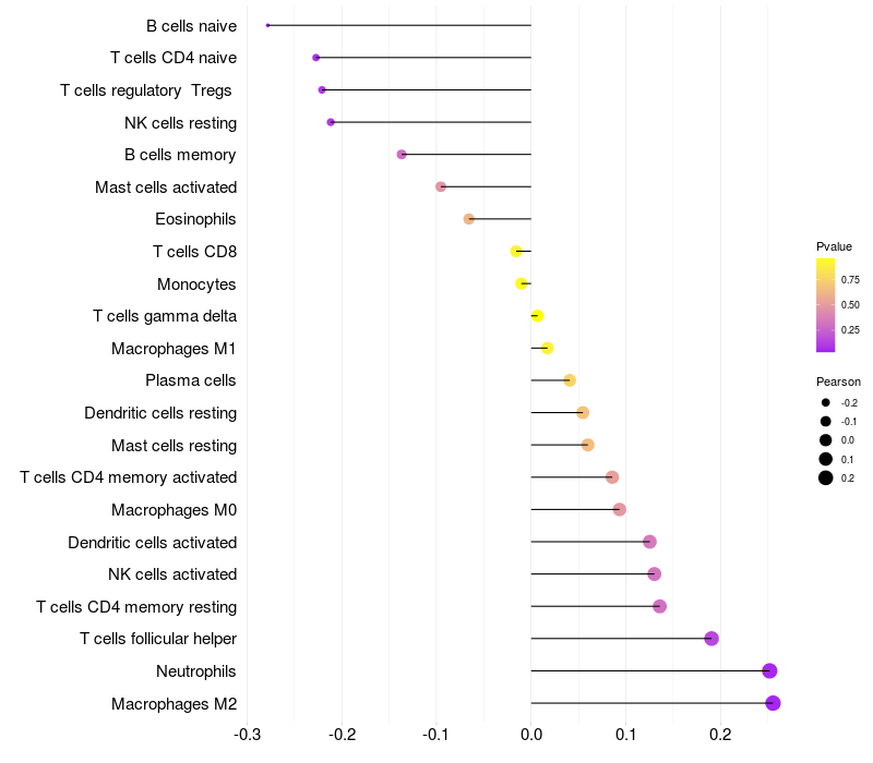 Lollipop of FAM83B expression and immune infiltrating cell level correlation result in HPV+ samples