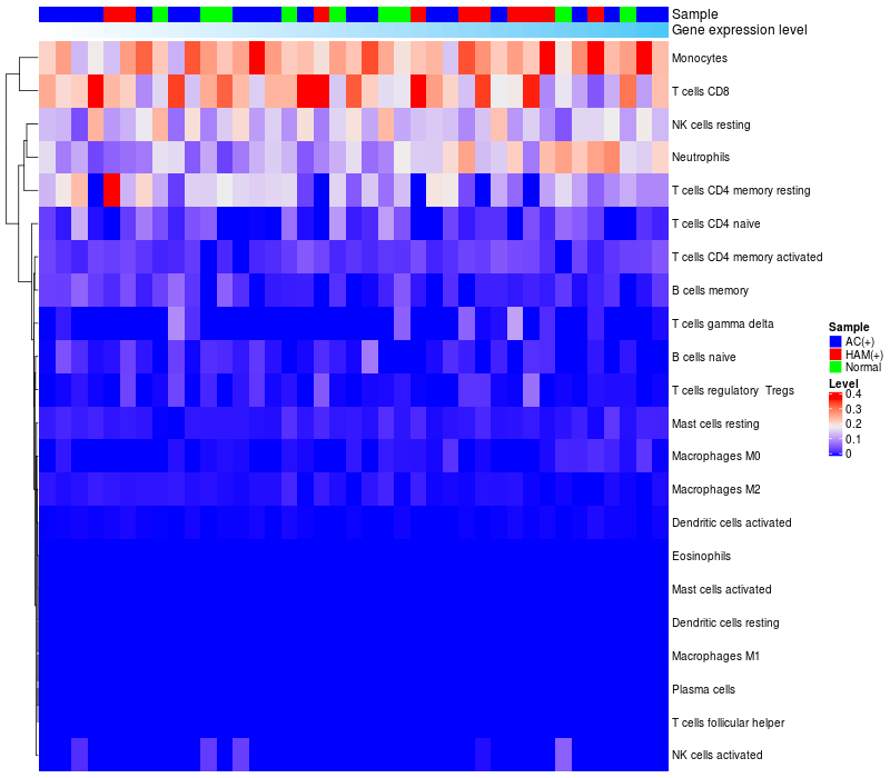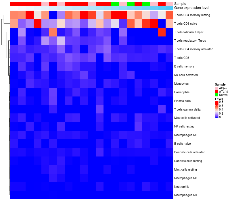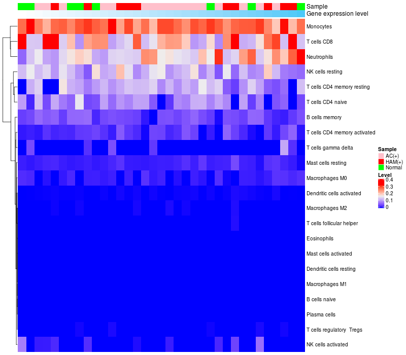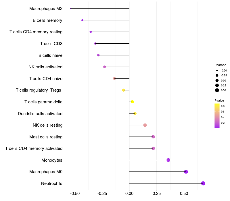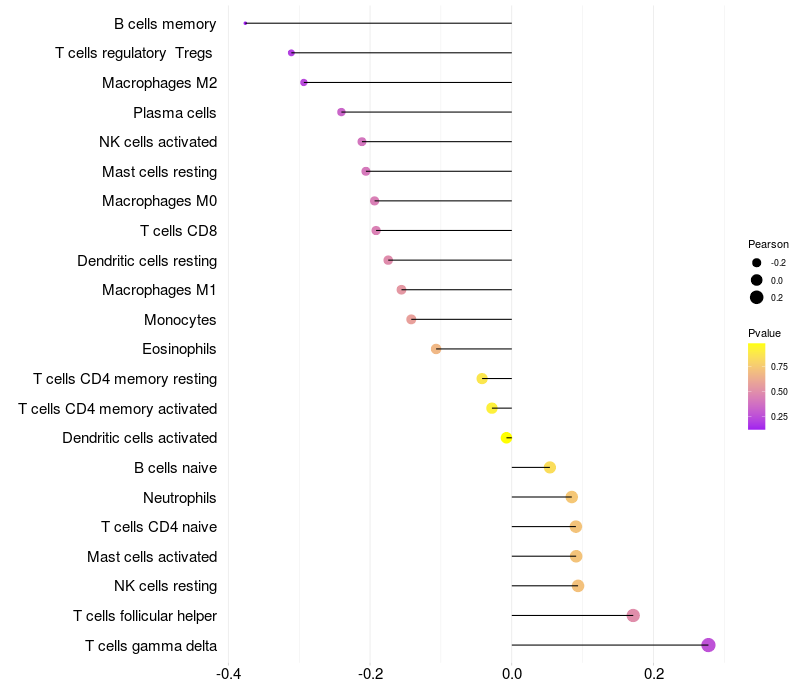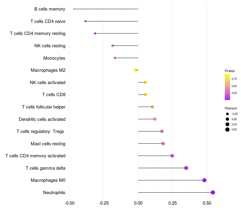 Lollipop of FAM8A1 expression and immune infiltrating cell level correlation result in HTLV1+ samples