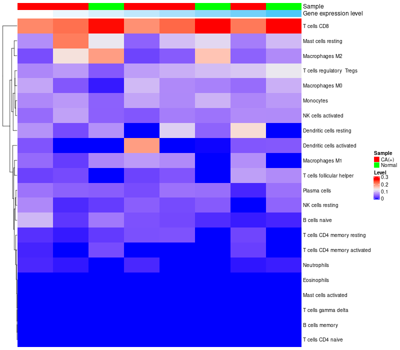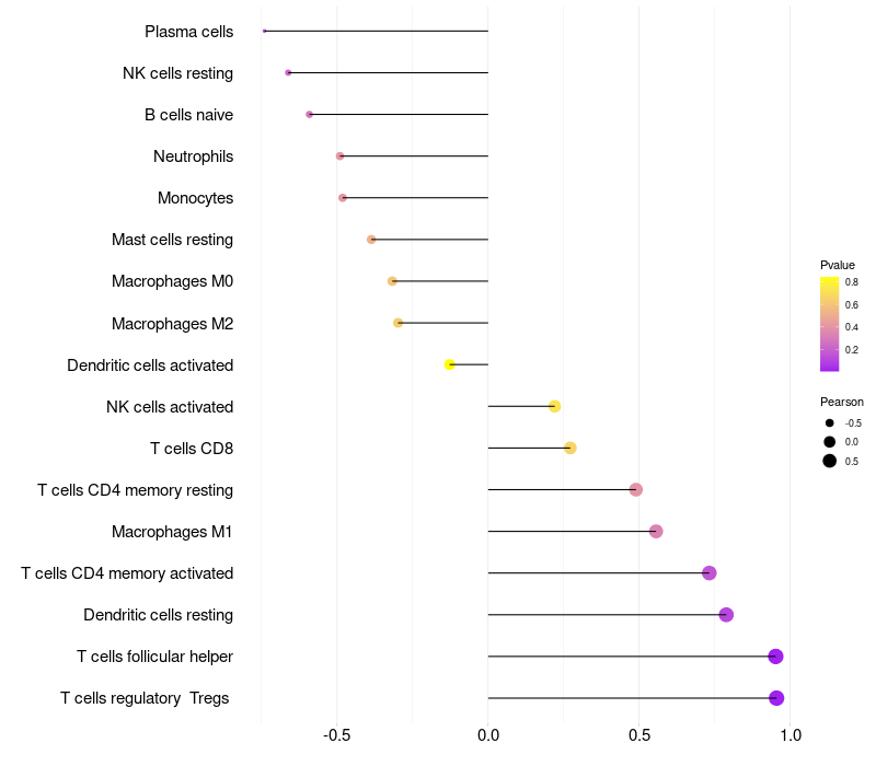 Relationship between gene expression and immune infiltrating cell level