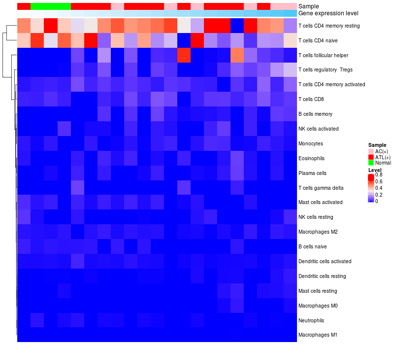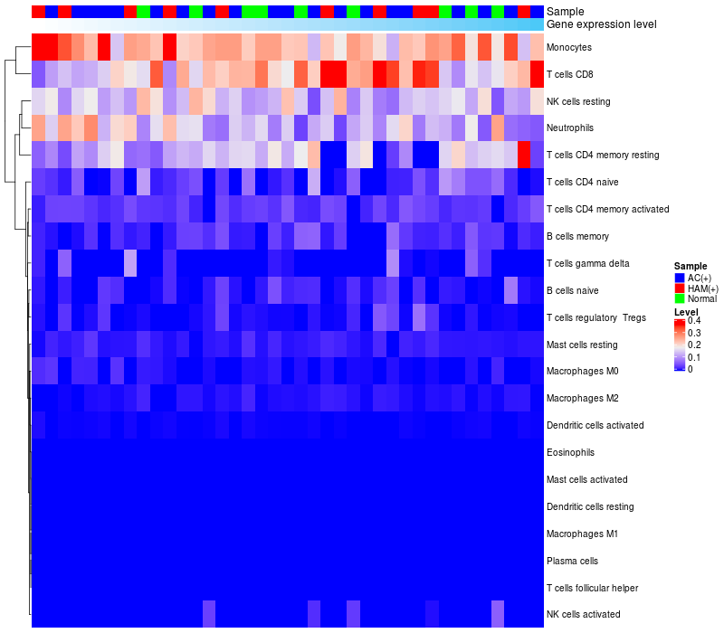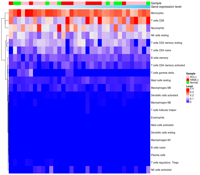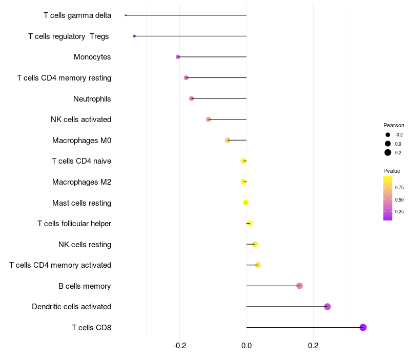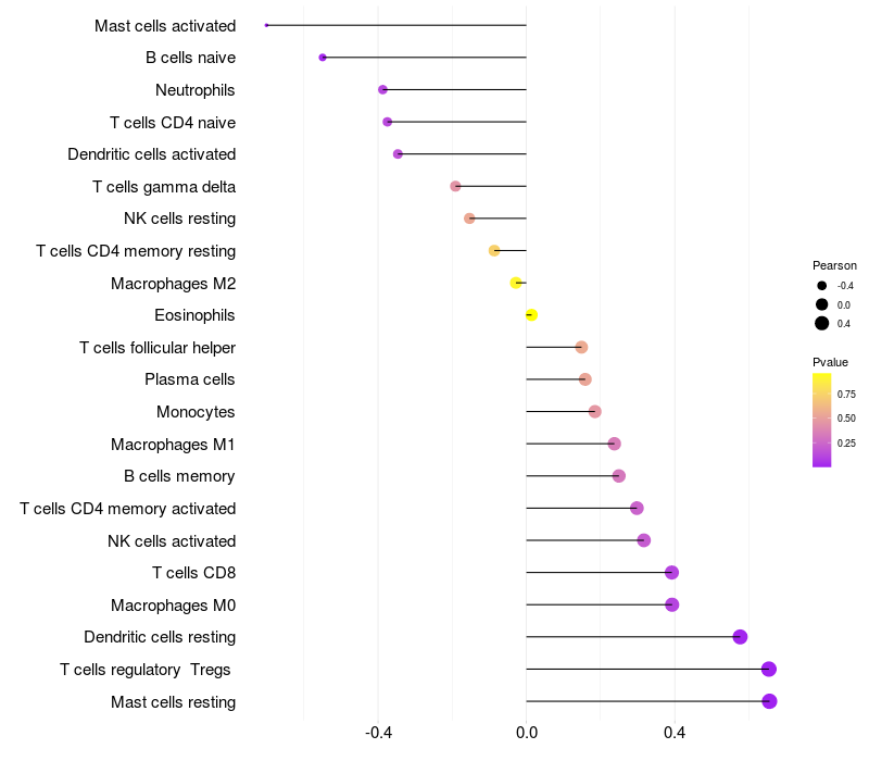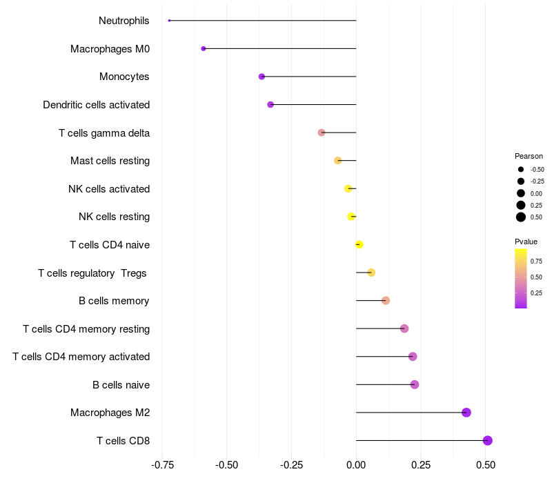 Relationship between gene expression and immune infiltrating cell level
