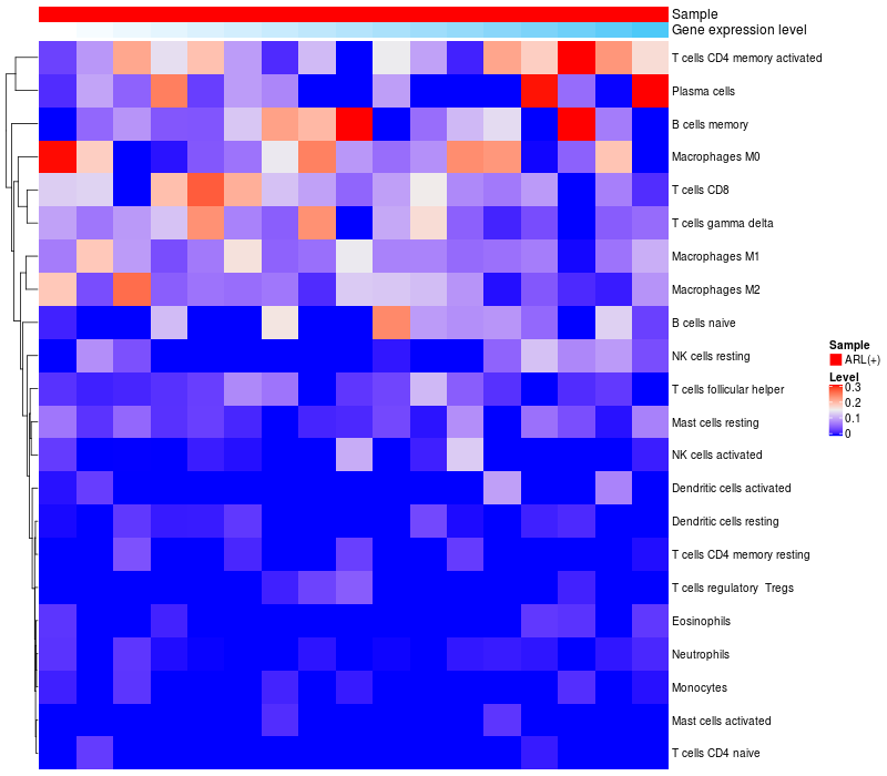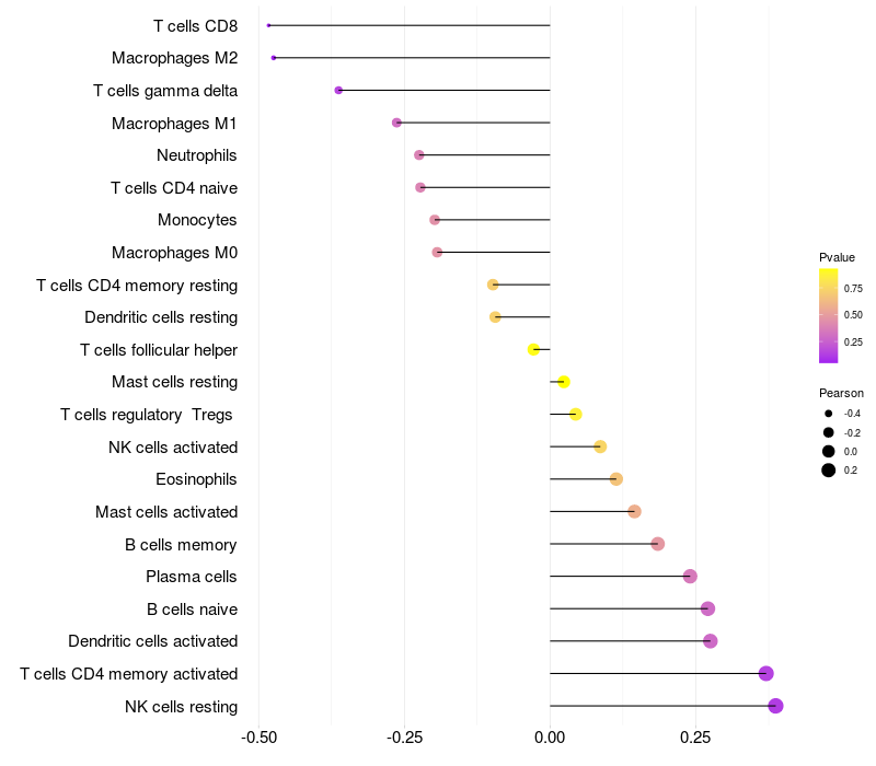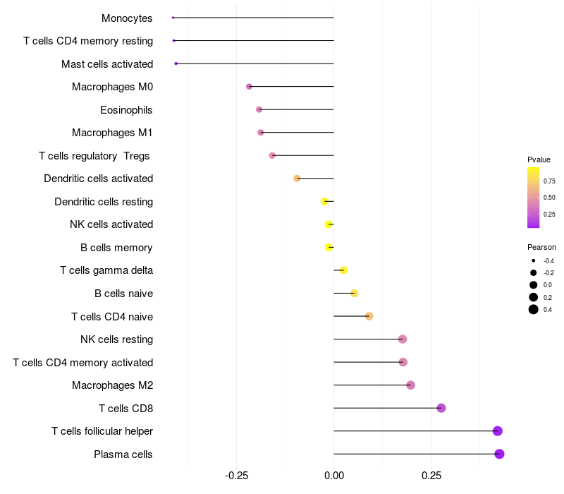 Relationship between gene expression and immune infiltrating cell level