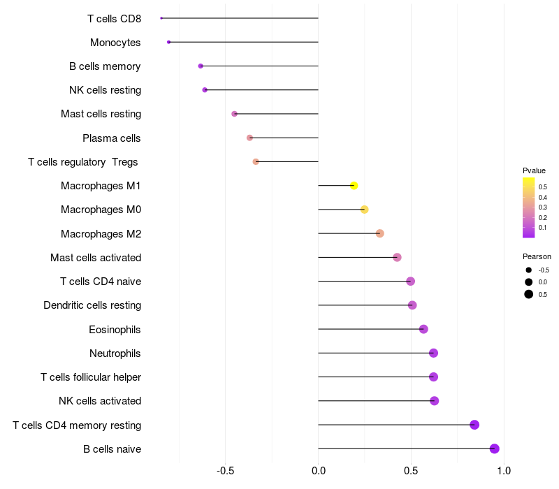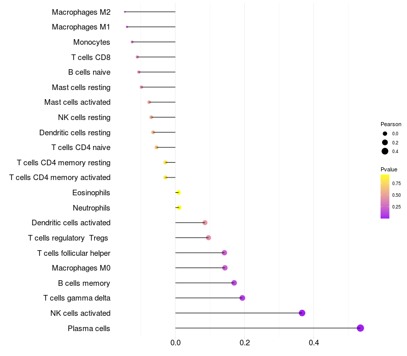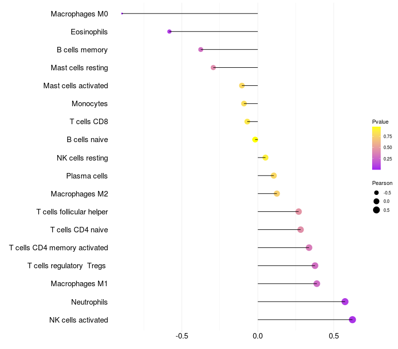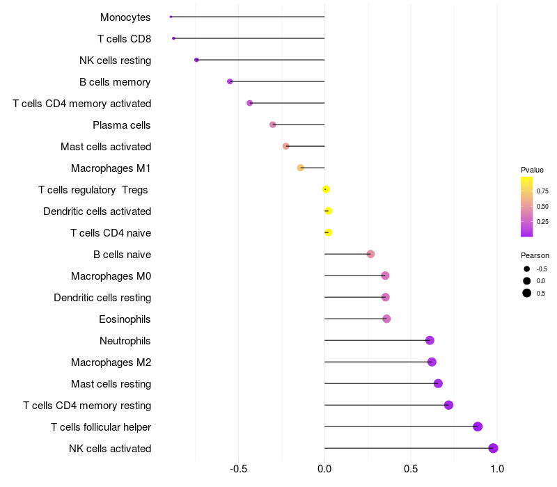 Lollipop of FANK1 expression and immune infiltrating cell level correlation result in HBV+ Liver cirrhosis samples