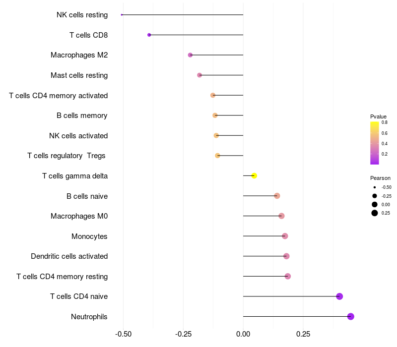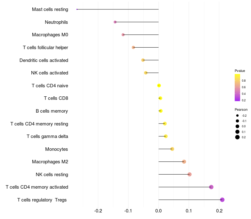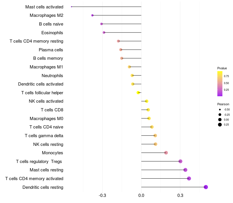 Lollipop of FAP expression and immune infiltrating cell level correlation result in HTLV1+ samples