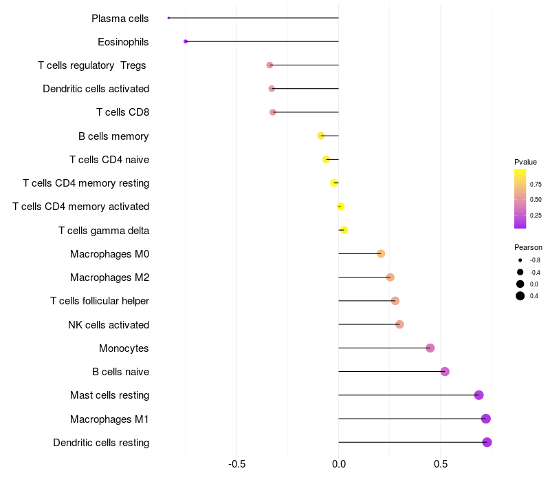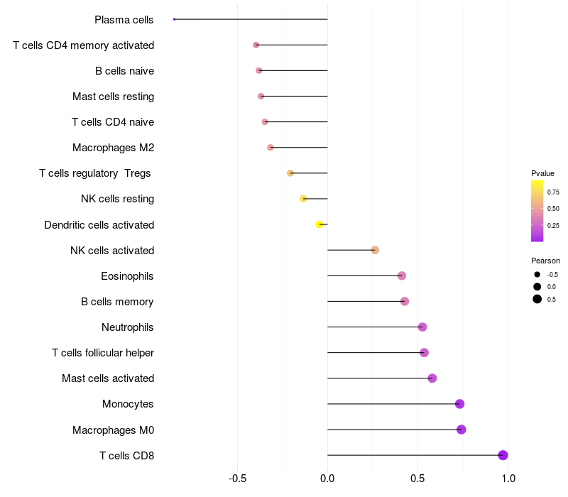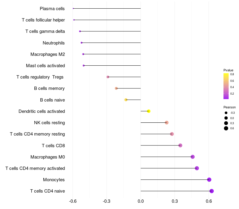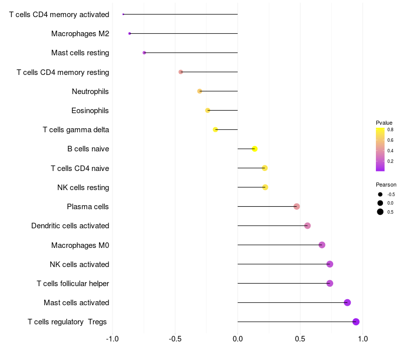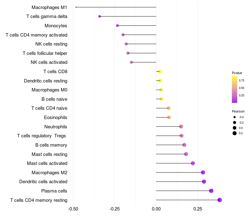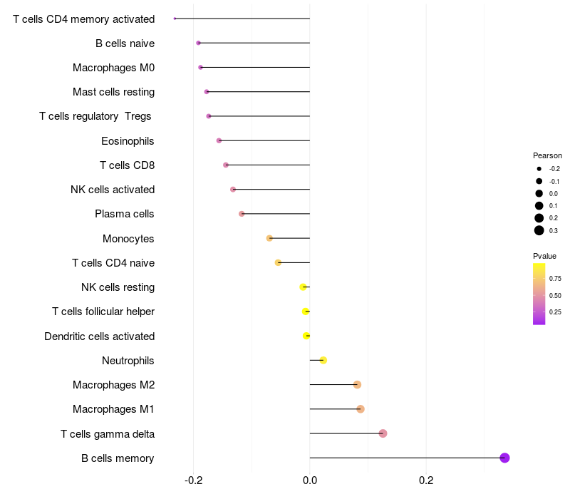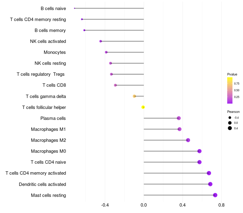 Lollipop of FARP1 expression and immune infiltrating cell level correlation result in EBV+ samples